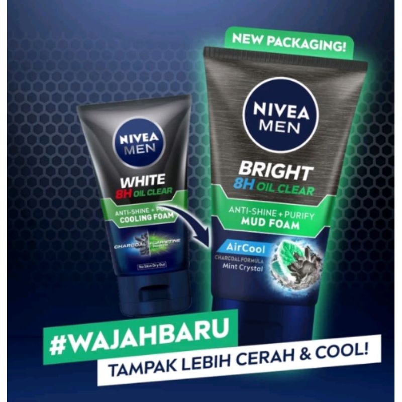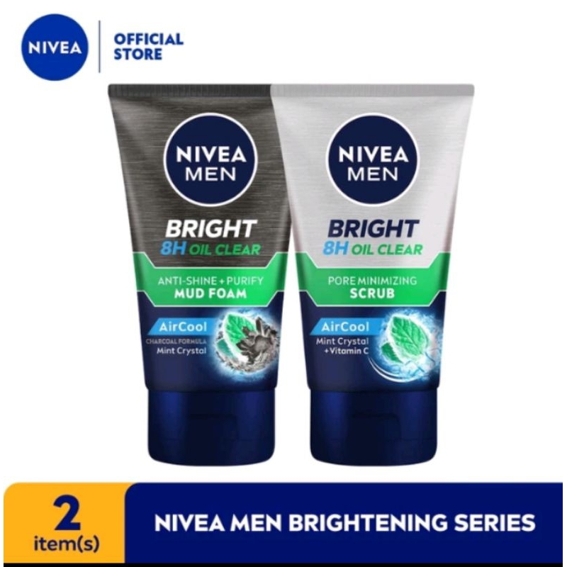 Paket NIVEA Men Whitening Series,Oil Control Cooling Mud Facial Foam 100ml-Oil Control Facial Scrub 100ml