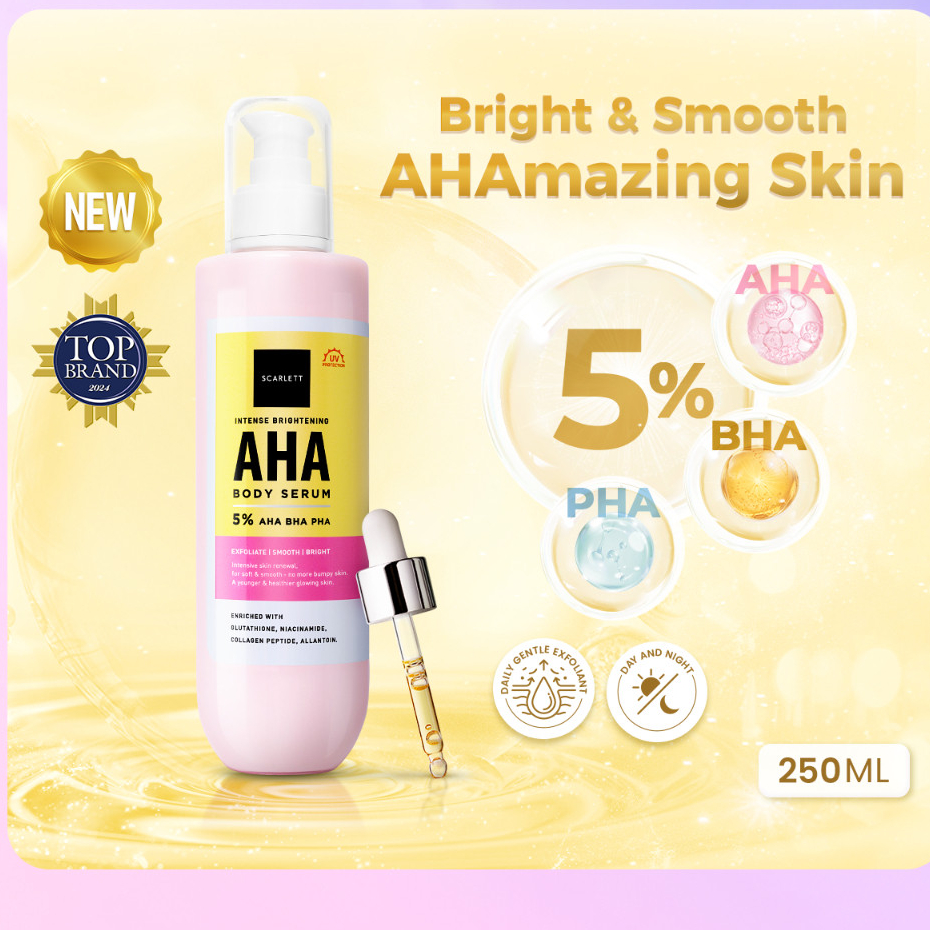 AHA SCARLETT WHITENING INTENSE BRIGHTENING AHA BODY SERUM 5% AHA BHA PHA HAND BODY LOTION BODY CARE PELEMBAB KULIT