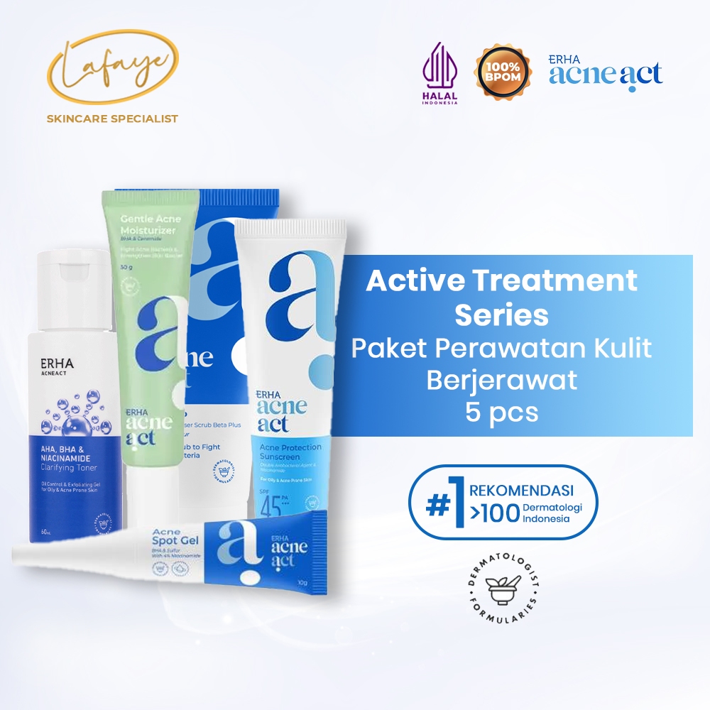 ERHA Penghilang Jerawat Lengkap 5 Pcs - Paket ACSBP - Spot Gel - Toner - Sunscreen - Moisturizer