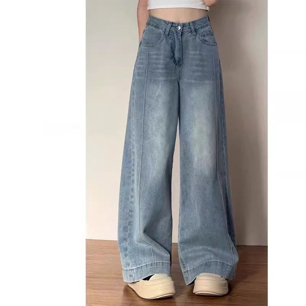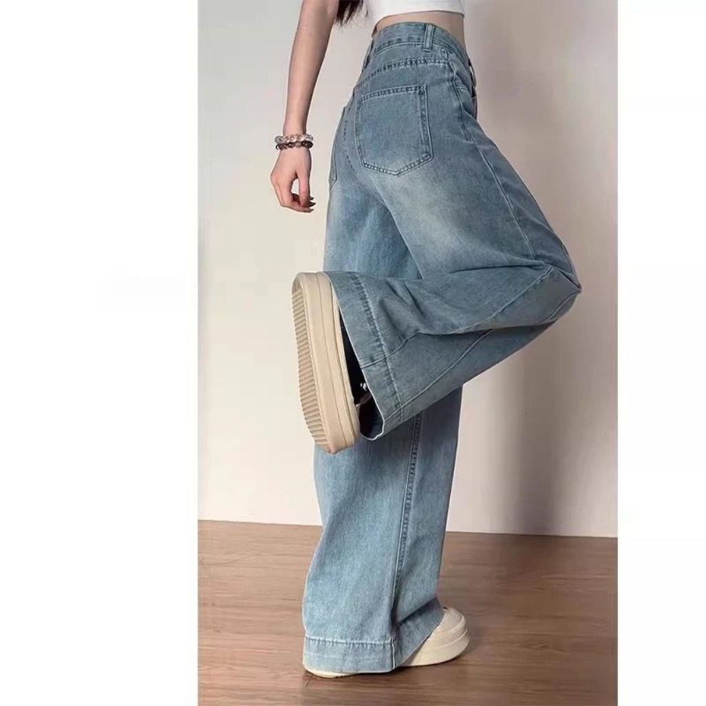 LULU Biru Premium Kulot Highwaist Celana Panjang Wanita-baggy Jeans Wanita--baggy Baggy Denim