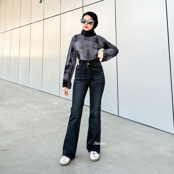 Jiniso Hangout - 617 Ultra Cutbray Stretch Highwaist Celana Jeans Wanita - 27