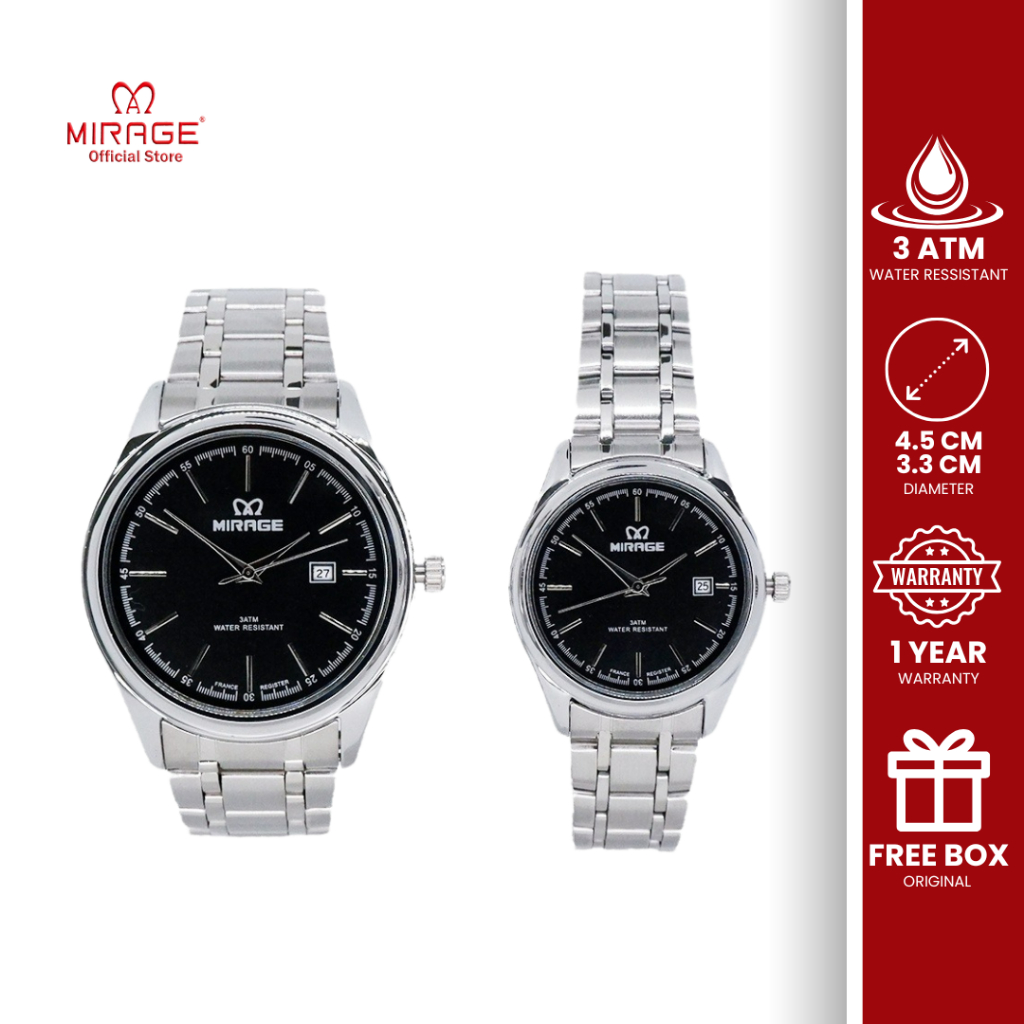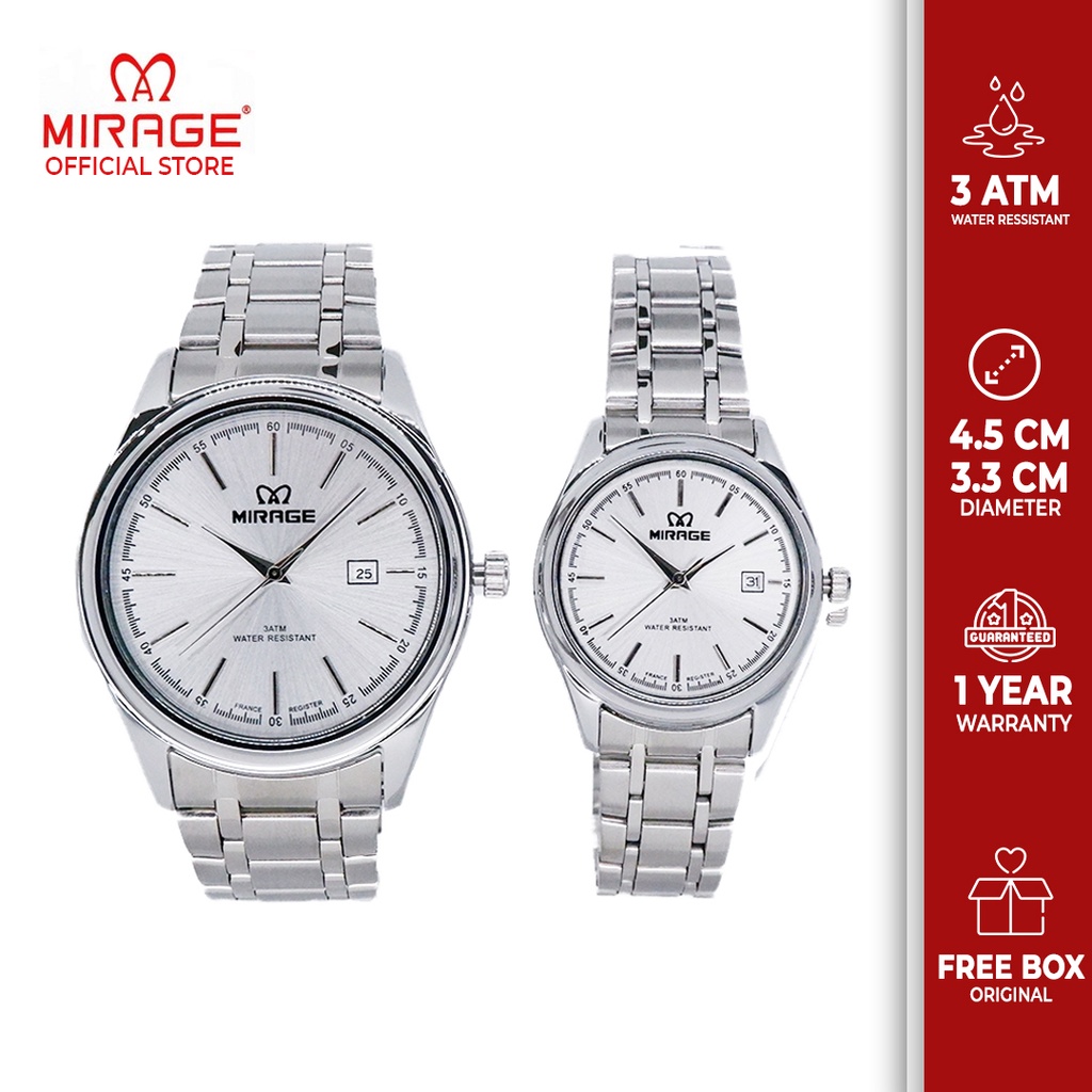 Mirage Jam Tangan Couple Pasangan Analog Original Casual Formal Stainless Silver Anti Karat 8680