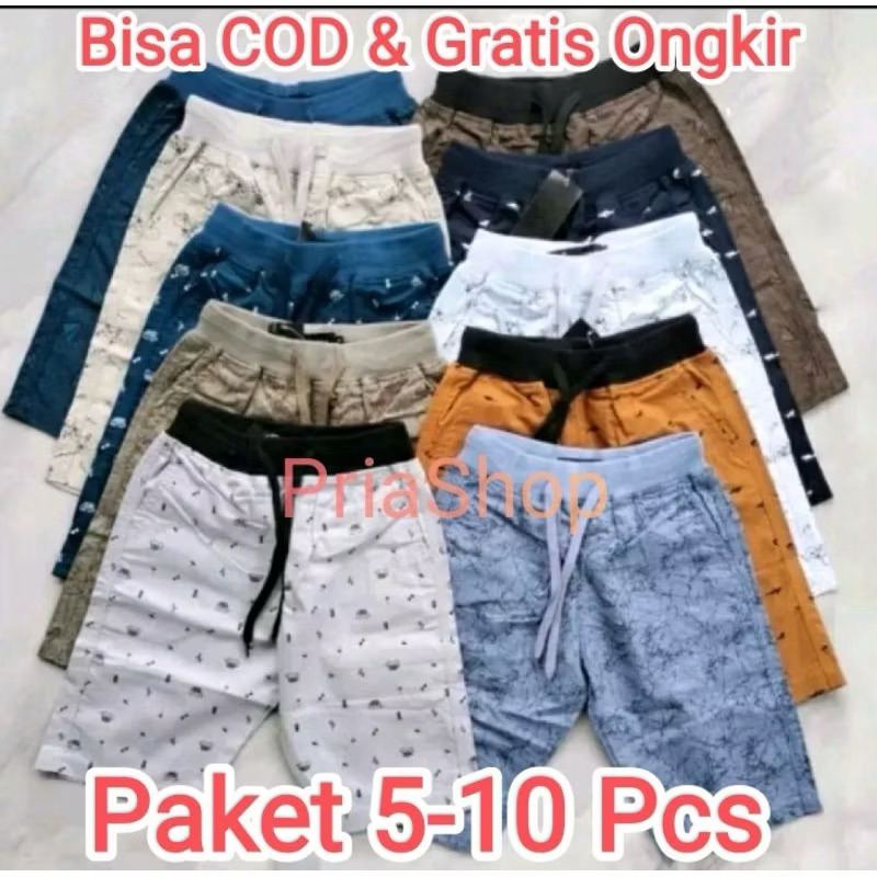 [Paket 100 Ribu Isi 10] Celana Pendek Anak Motif Umur 2-12 Tahun/ Celana Motif Printing Sablon