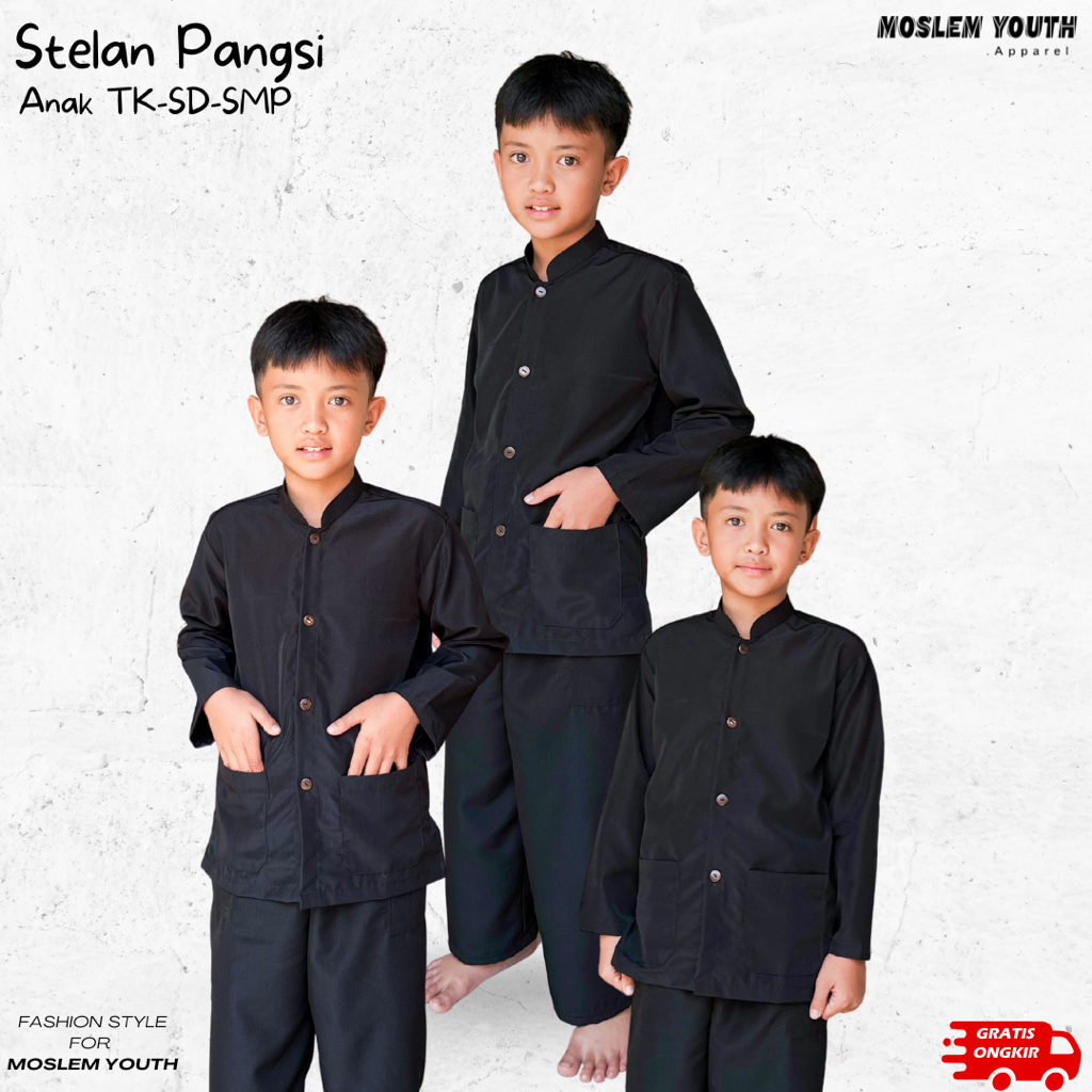 Setelan Baju Pangsi/Silat Sunda Hitam Anak Laki-laki TK-SD-SMP polos besway premium adat tradisional