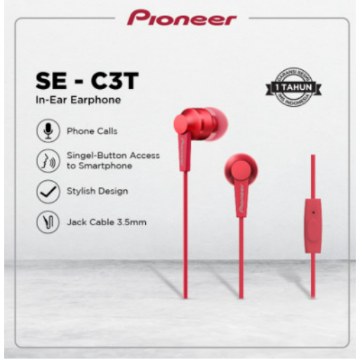 Pioneer Earphone SE-C3T Headset with Mic. SE 3CT ORI Garansi Resmi SE C3T