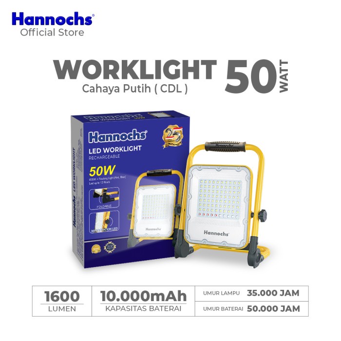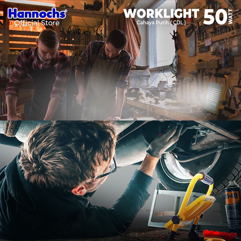 Hannochs Lampu Sorot Darurat LED Worklight 50W Cahaya Putih Lampu Emergency