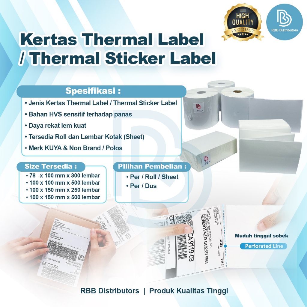 KERTAS THERMAL 100X150 STICKER LABEL KERTAS RESI ISI 500 PCS