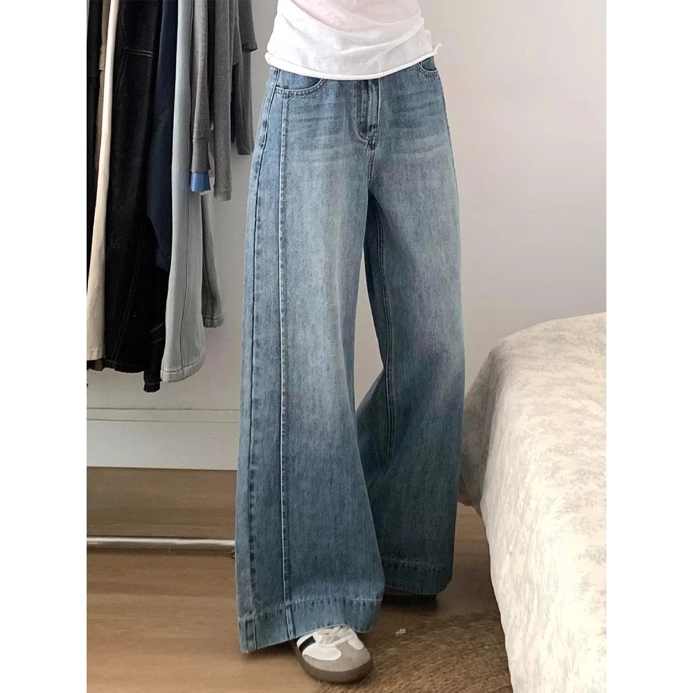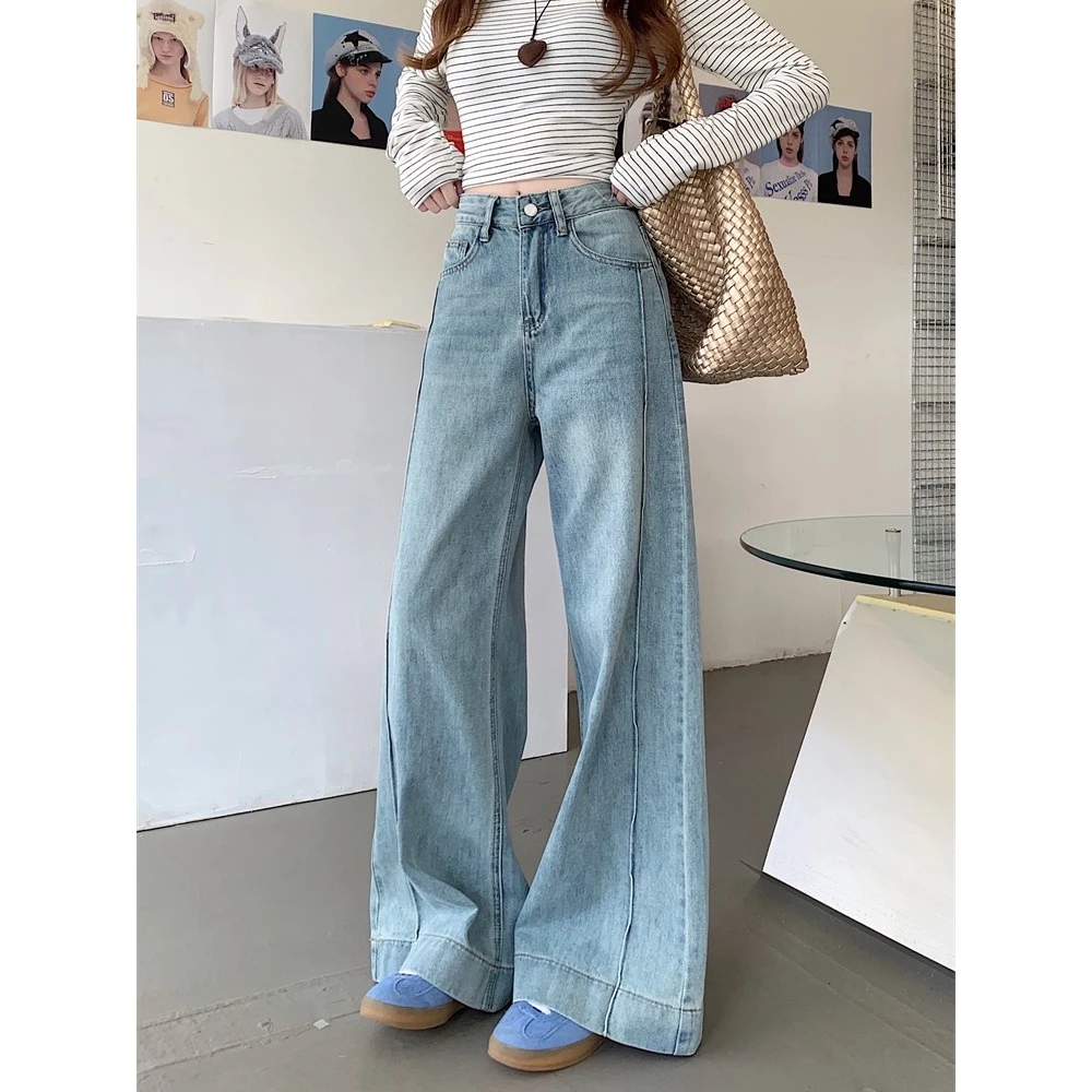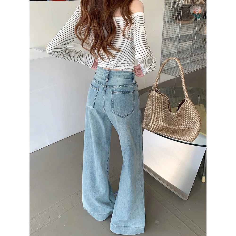 New Celana Biru kekinian Highwaist Kulot Loose Celana Wide Leg Jeans Korean Style