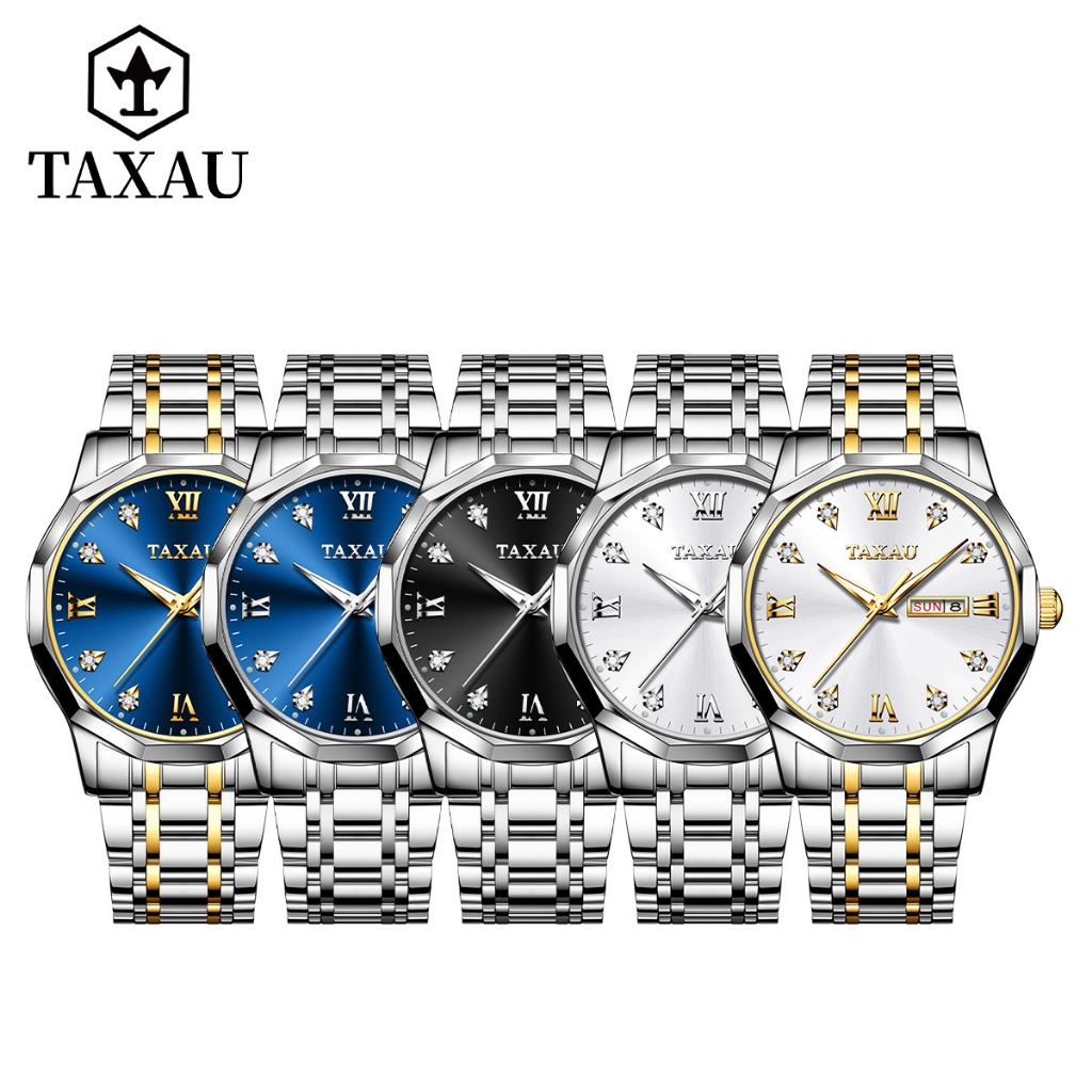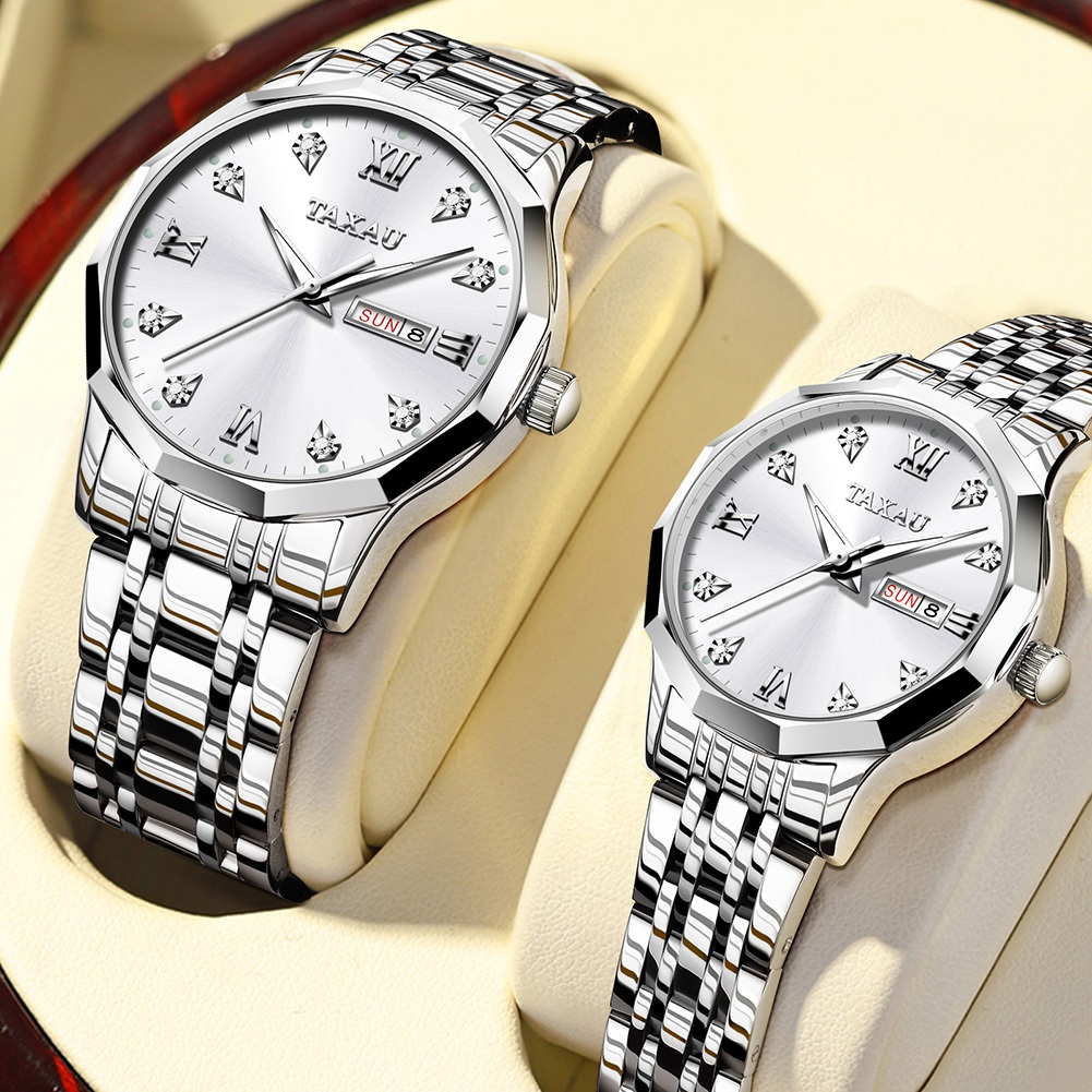 TAXAU Jam Tangan Couple Pasangan Original Anti Air Rantai Stainless Steel Cowok Analog Quartz Elegan Fashion Bisnis Men