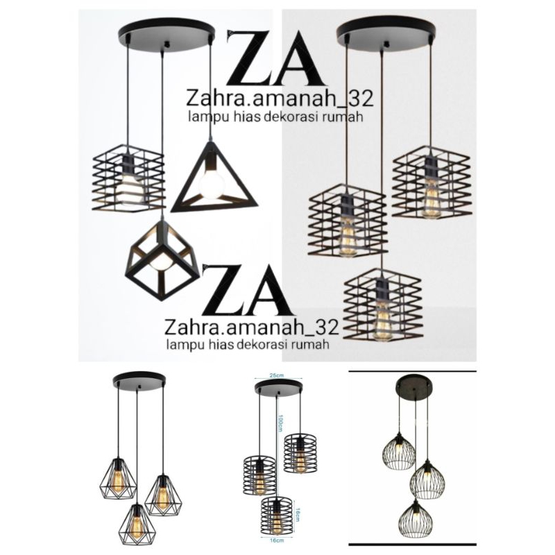 Lampu Gantung Cabang 3 Bulat 3in1 Anti Karat