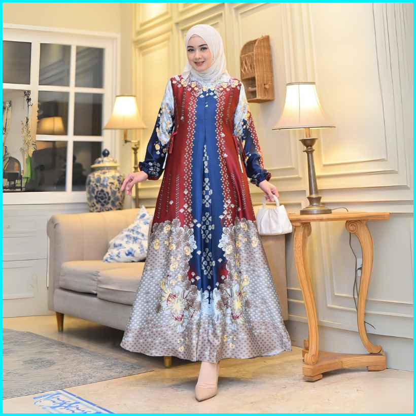 Baju Gamis Armani Silk Premium Wanita Quality A Motif Bunga Seragaman M L Xl 4l 6l Kondanggan