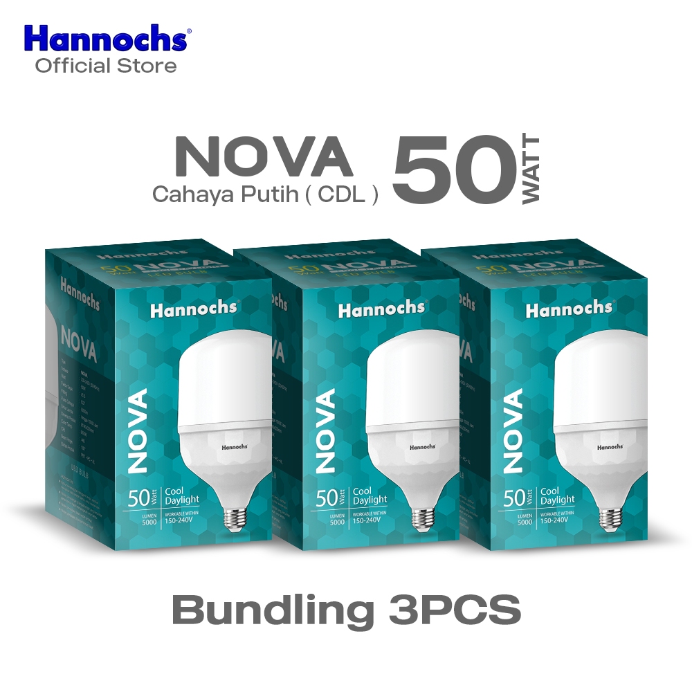 Hannochs Lampu Bohlam LED Nova 50W Cahaya Putih Paket isi 3pcs