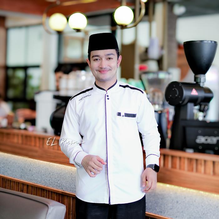 Baju Koko Kemeja Pria Lengan Panjang El Rumi Motif Yisunsin Muslim Dewasa - Katun Toyobo Atasan Putih - Hitam, M