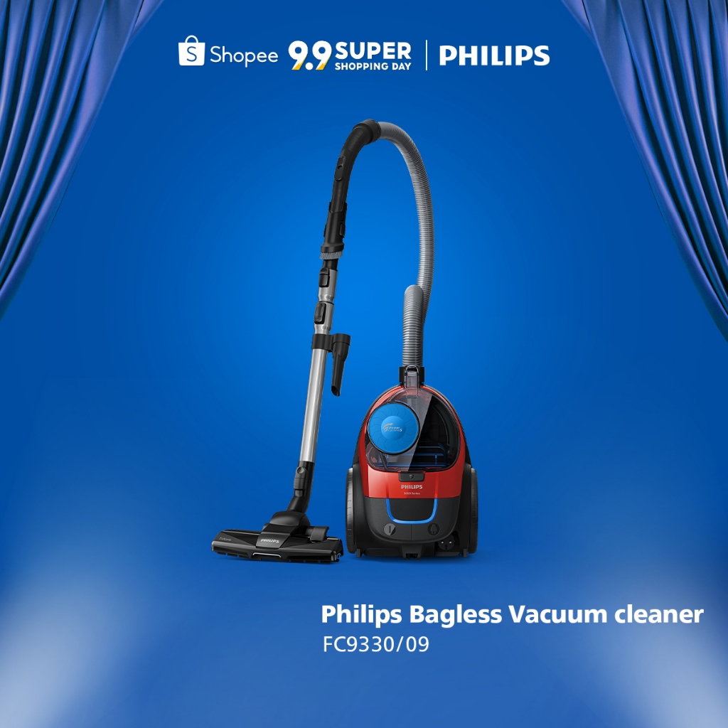 PHILIPS Bagless Vacuum Cleaner - FC9330 Powercyclone 5/Daya Jangkau 9m/Nozel Triactive/Filter Alergi/Penyedot Penghisap Debu Serbaguna/Biru Merah