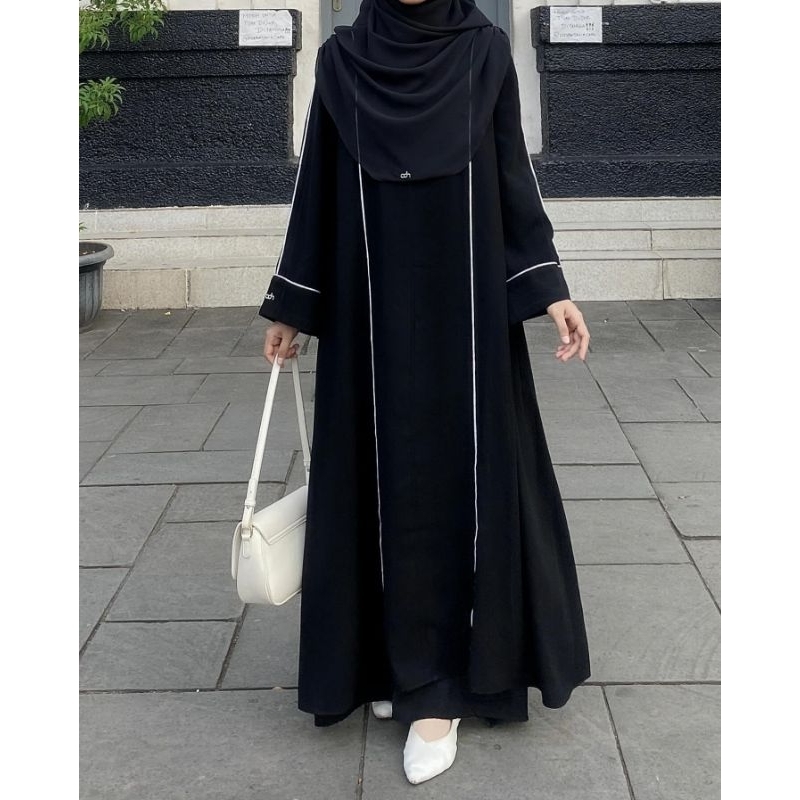 Abaya Wanita hitam variasi plet putih elegant maksi dress basic arabian kombi gamis turkey jubah hitam saudi premium crinkle airflow
