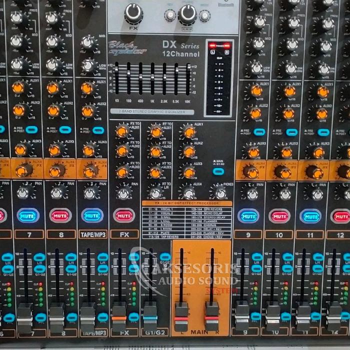 Mixer Blackspider 12 Channel DX Series 256 DSP Efek & USB Bluetooth