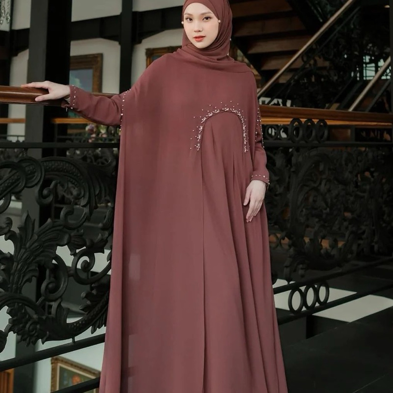 Luna abaya dress bahan ceruty armany full furing aplikasi et mutiara gamis abaya turky simple
