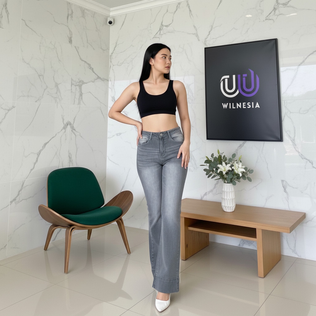 Wilnesia Cutbray Jeans Higwaist Lipat besar Jeans Strech Kekinian Wanita Tinggi Terbaru