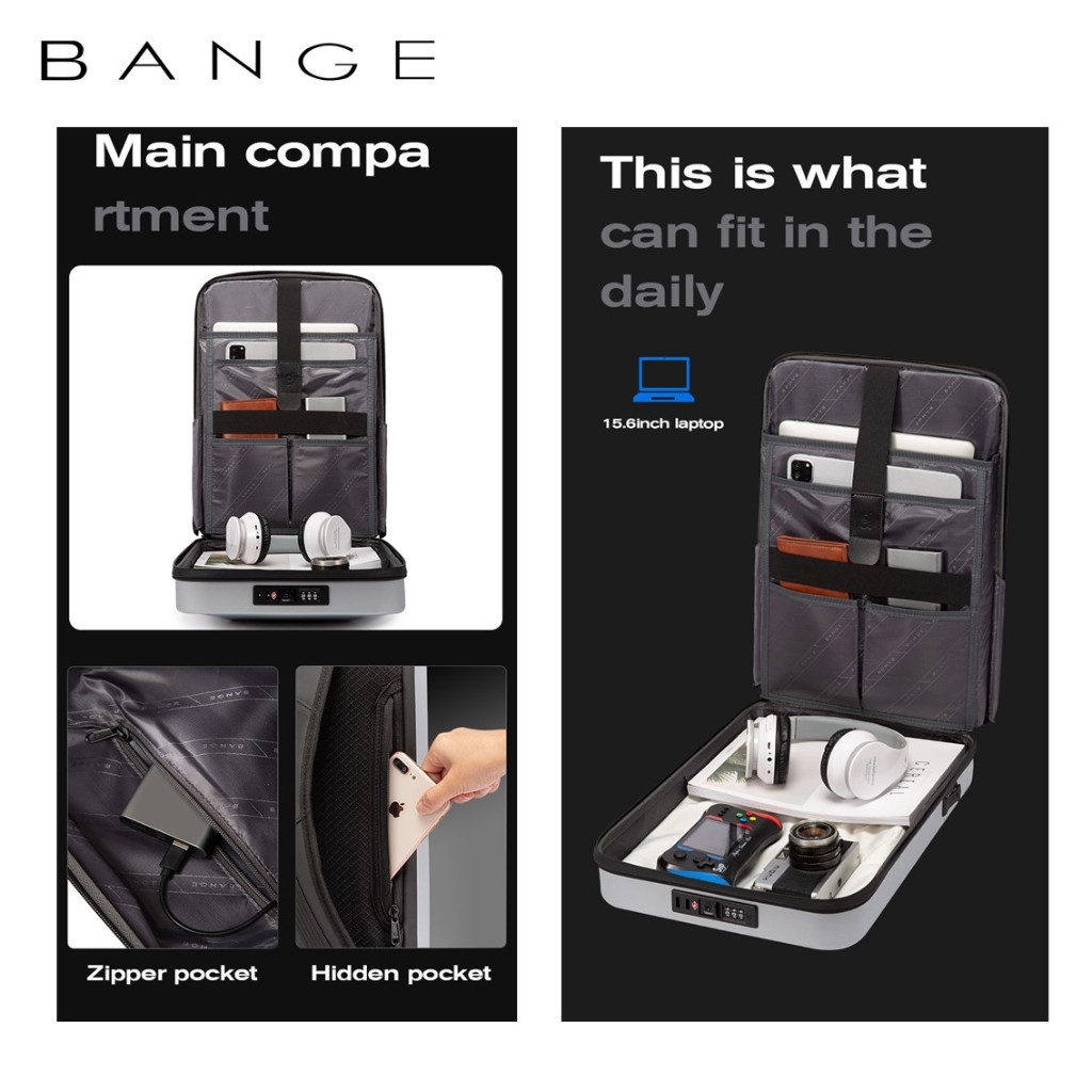 BANGE BG7682 Tas Laptop Kerja Ransel Backpack Pria Lock TSA Hardshell Hardcase 15.6 Inch