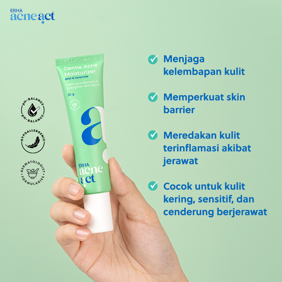 ERHA Acneact Gentle Acne Moisturizer 30g - Pelembab Wajah Jerawat Ceramide Low ph Ph Balance