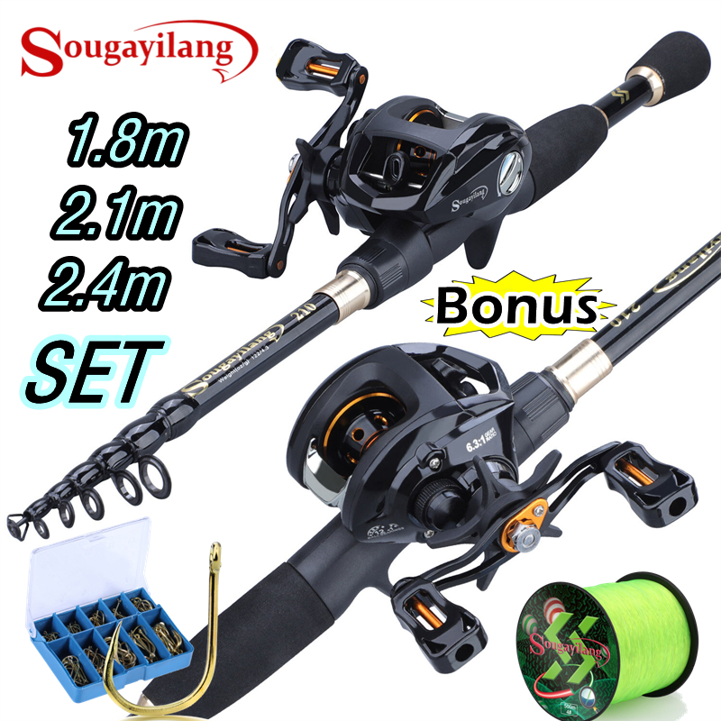 Sougayilang Joran Pancing Set Tongkat Memancing Telescopic Is Portabel untuk Air Tawar Laut 12 + 1BB