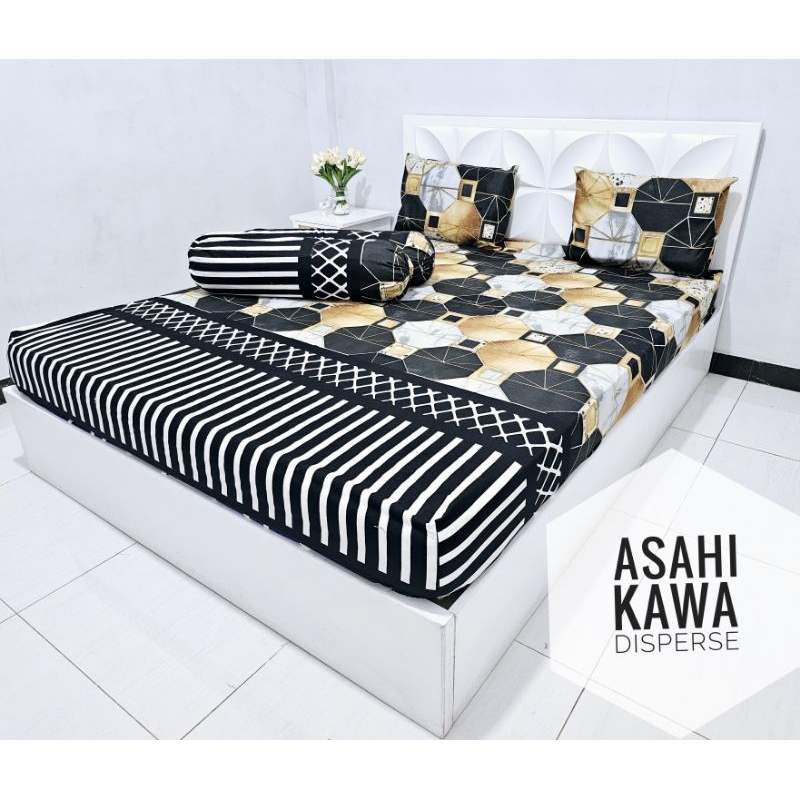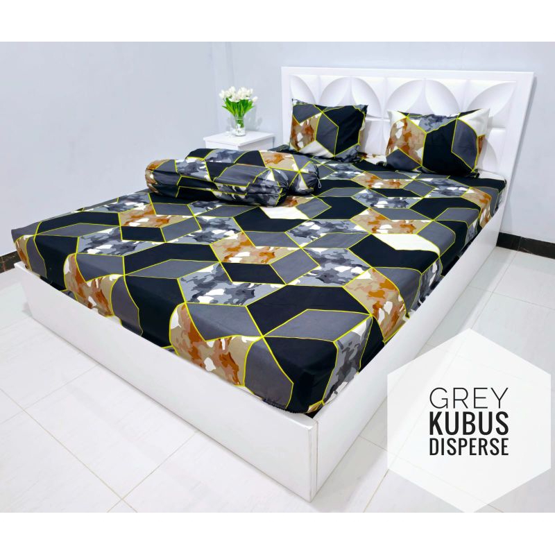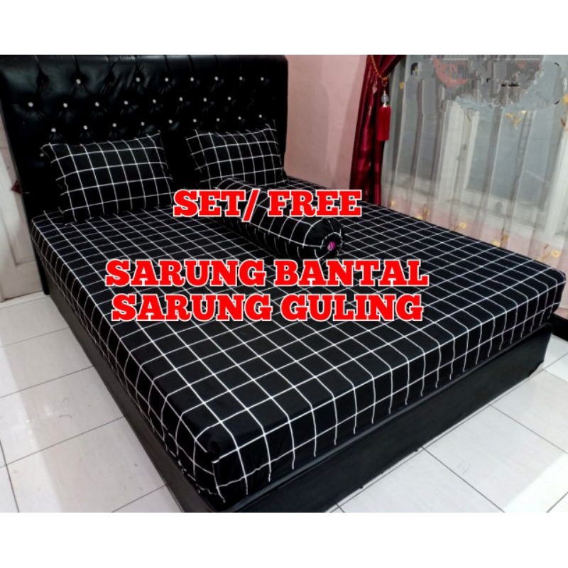 SPREI KOTAK HITAM Katun Disperse 180X200 160X200 120X200 Tinggi 20cm ADEM SET SARUNG BANTAL GULING