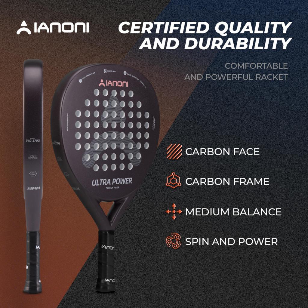 Raket Padel Ianoni Ultra wer Full Carbon Teardrop Shape Sandy Surface Padel Racket Upper Beginner