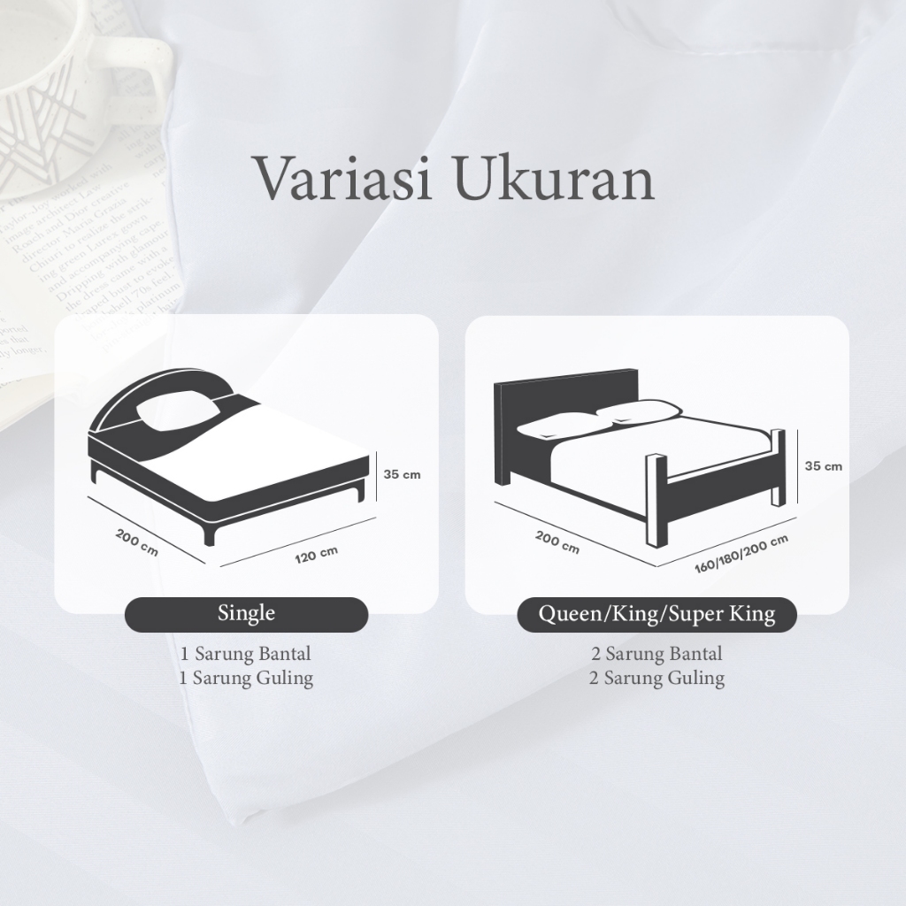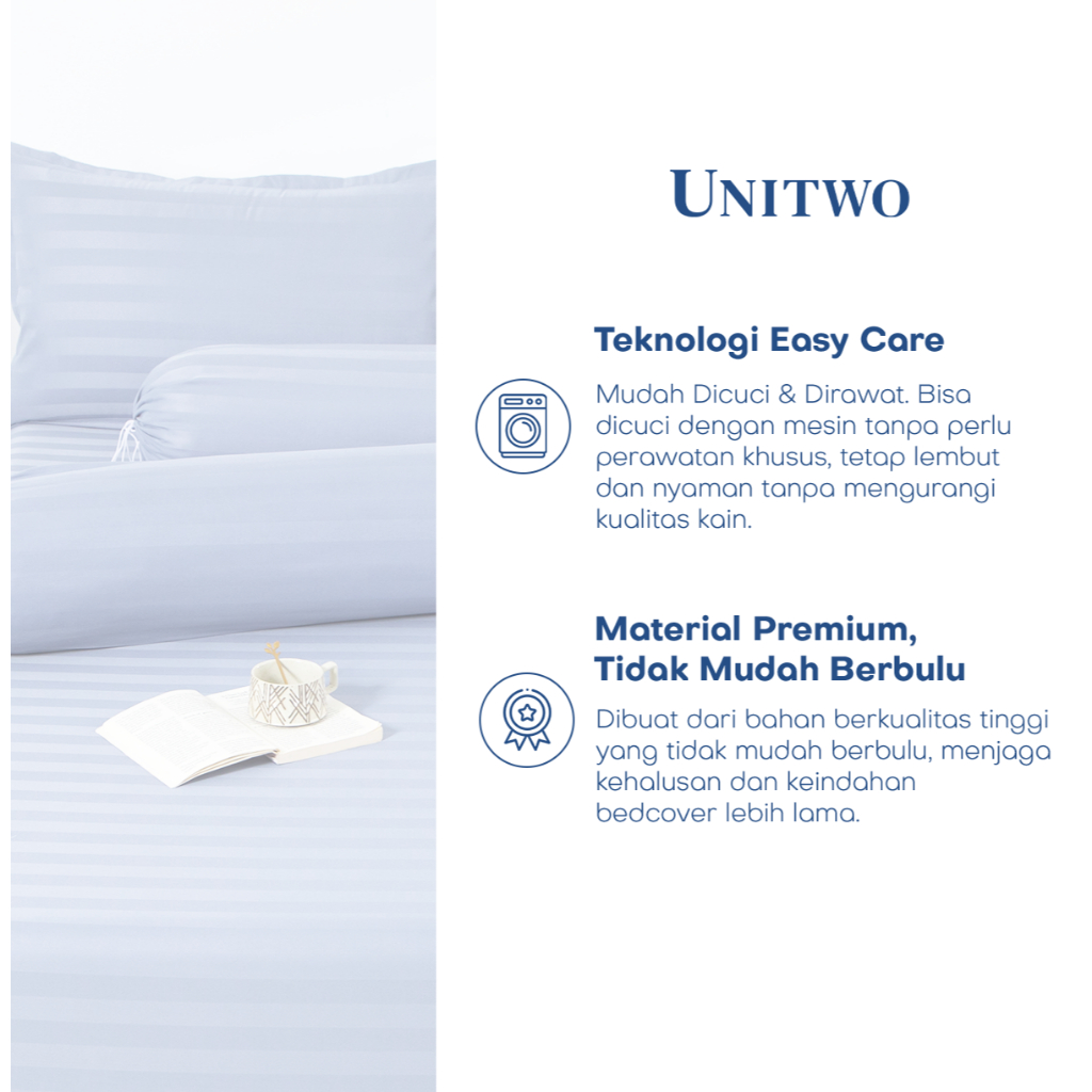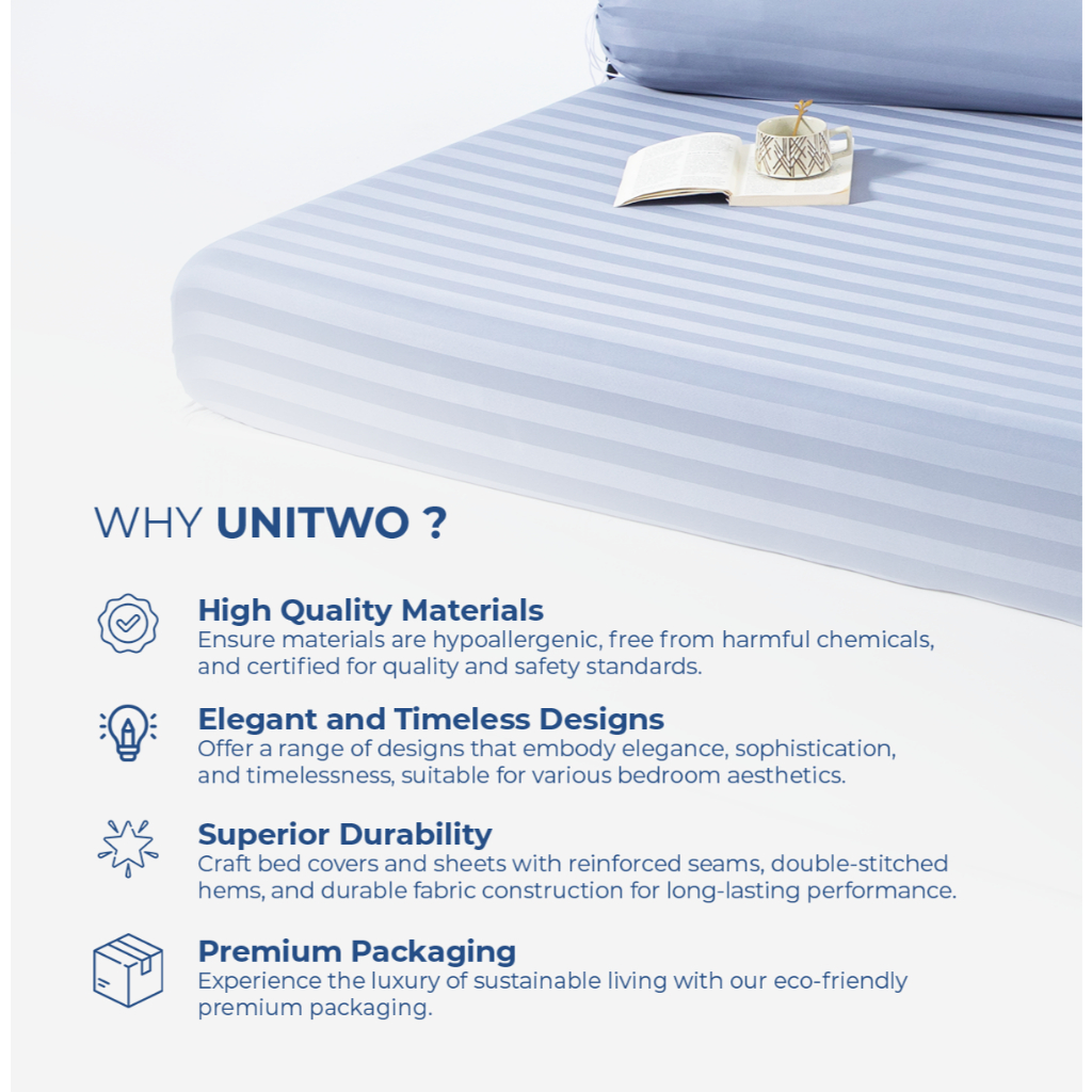 UNITWO LUXE [SEPREI SET ONLY] Seprei Set Hotel Motif Salur Dengan Sarung Bantal dan Guling Karet Keliling Tinggi 35cm