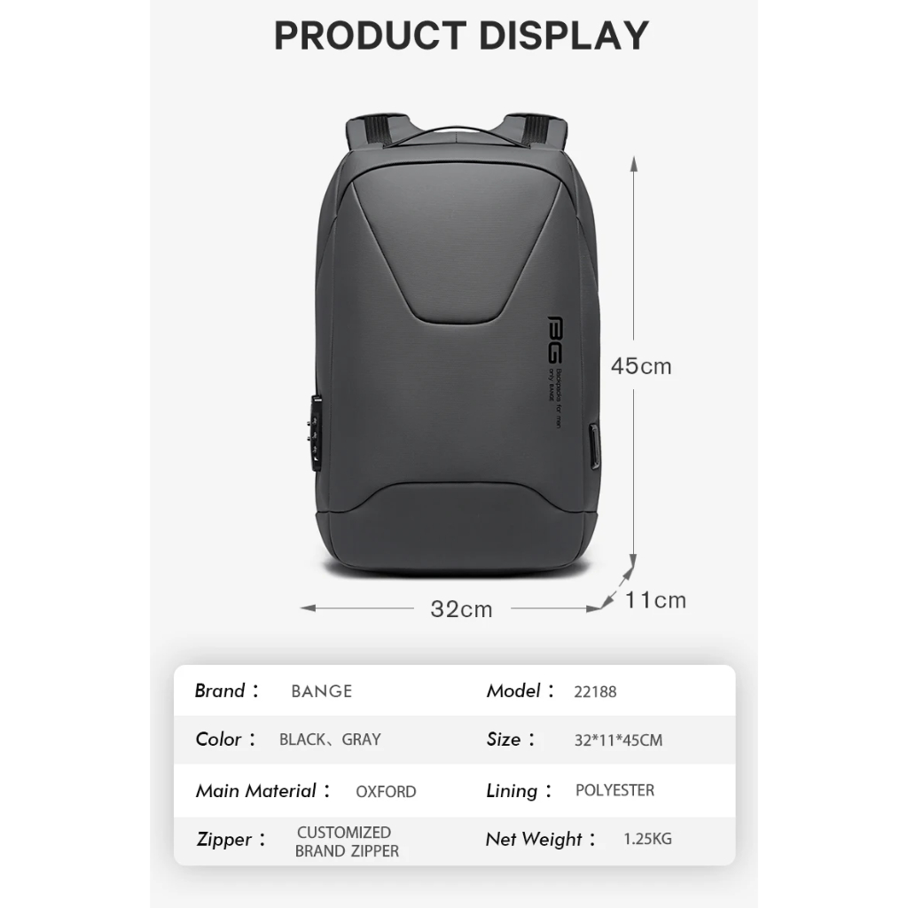 BANGE BG22188 Tas Ransel Laptop Kerja pria Backpack