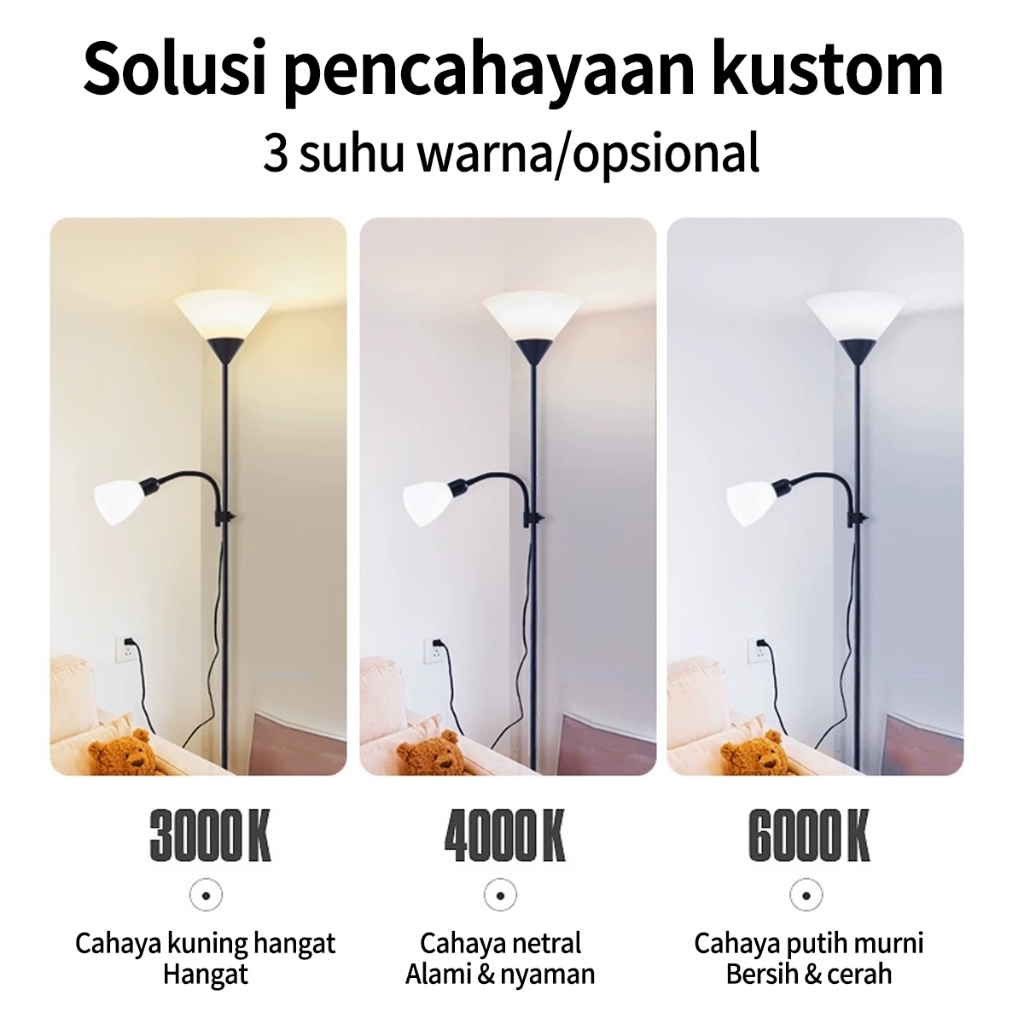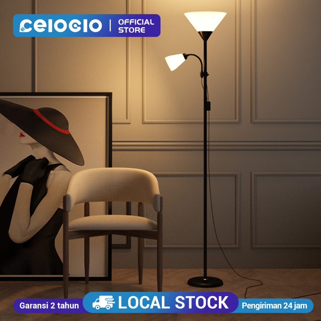 CELOGLO Lampu Lantai - Putih/Hitam Lampu Lantai Berdiri Double Lamp Standing Lamp Floor Lamp E27