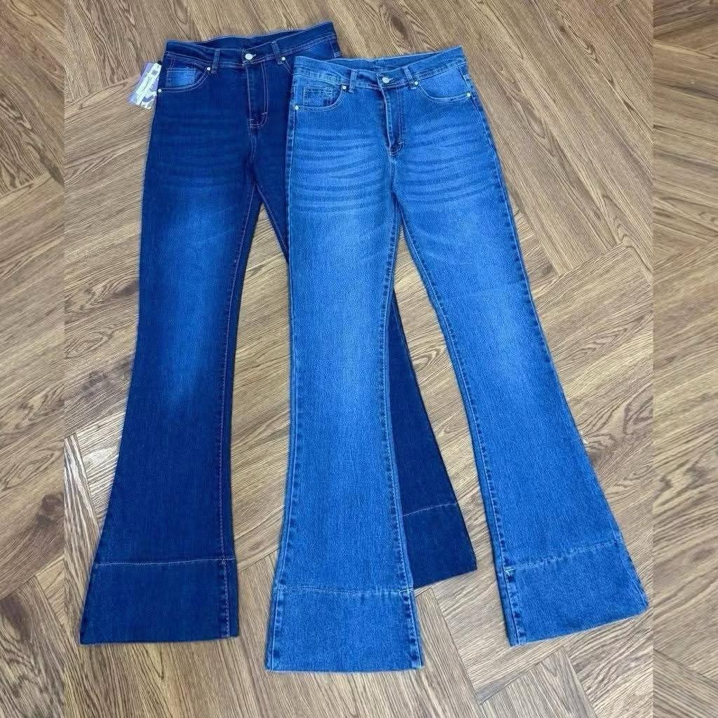 Jennie Cutbray Jeans Higwaist Lipatan Kaki Besar Jeans strecht Wanita