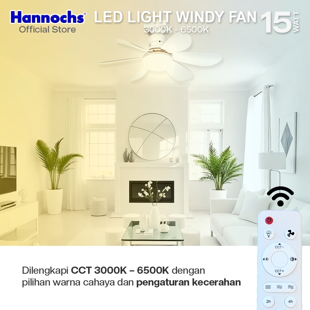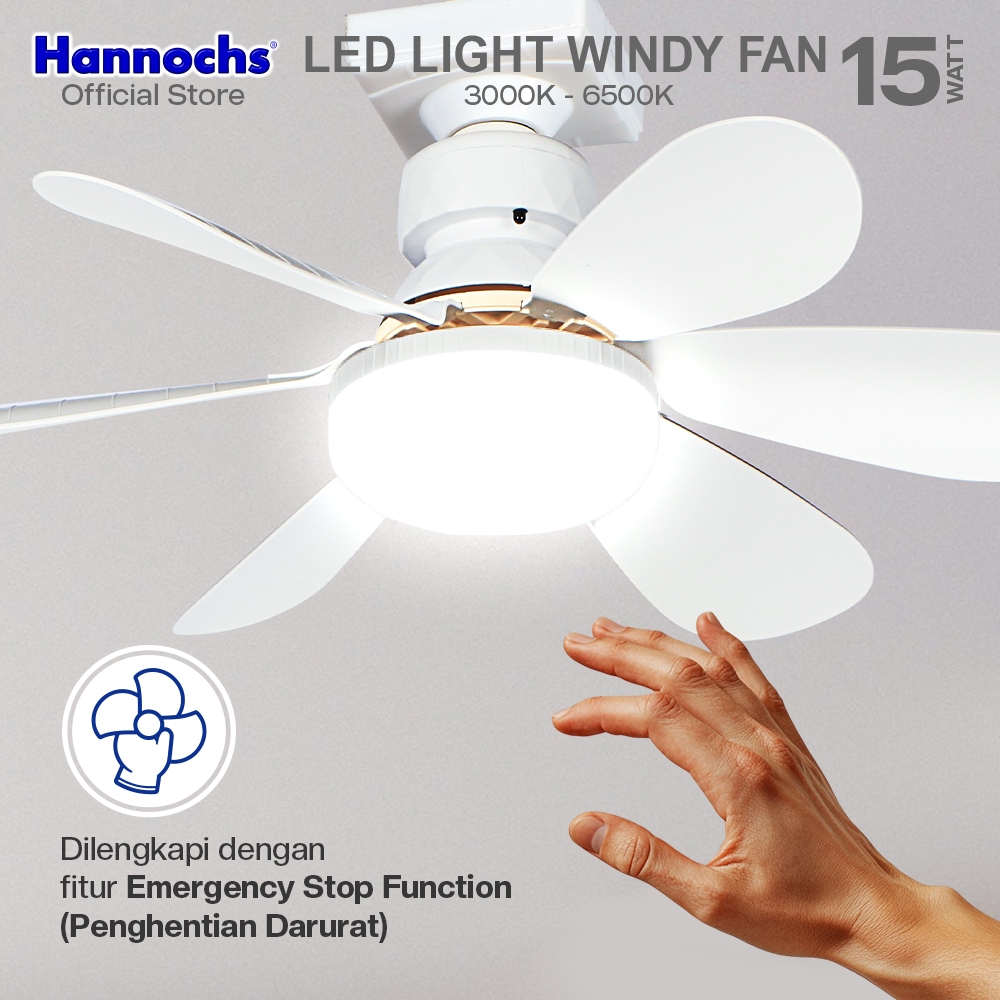 Hannochs Lampu Kipas Angin Plafon LED 2in1 Windy Fan light 15W CCT E27 - Multifungsi Dengan Peredupan Remote Control