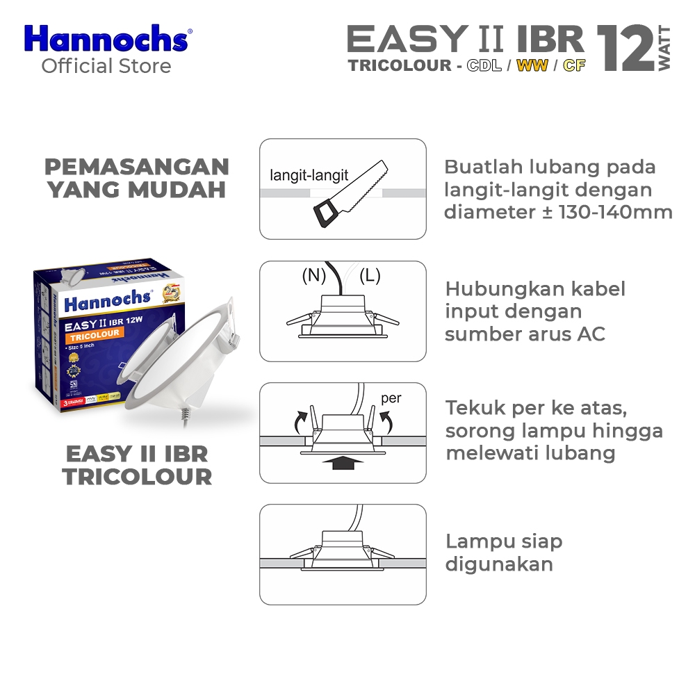 Hannochs Lampu Downlight LED EASY II 12W IBR isi 4pcs Tricolour INBOW
