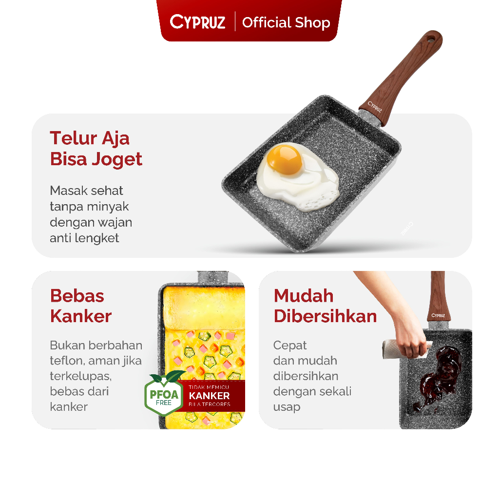 Cypruz Tamagoyaki Panci Wajan Penggorengan Telur Anti Lengket Grey Marble Series