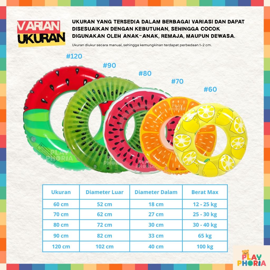 Pelampung Ban Renang Bulat Anak Motif Semangka Safety Swim Ring Pelampung Dewasa berbagai macam Buah