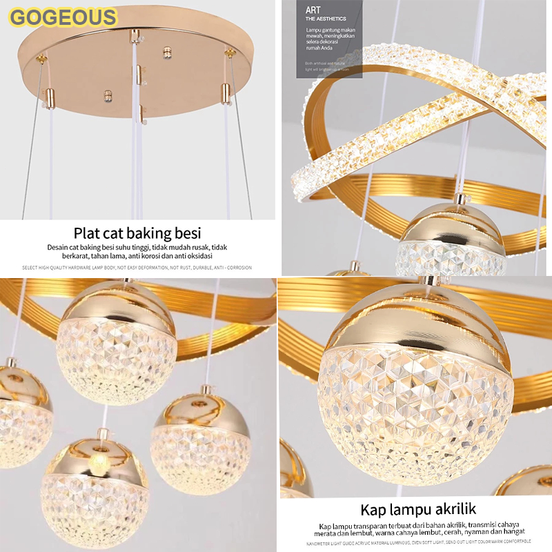 GOGEOUS Lampu Gantung Minimalis Kristal Lampu Hias Gantung Ruang Tamu Lampu Gantung Ruang Makan Dekoratif Mewah