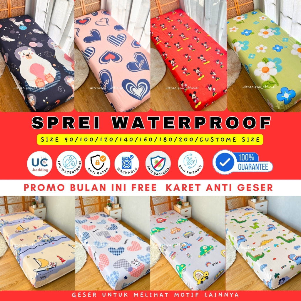 Sprei Waterproof Anti Air Ompol Bisa Custome Ukuran NO1 / NO2 / NO3 90 100 120 140 160 180 200