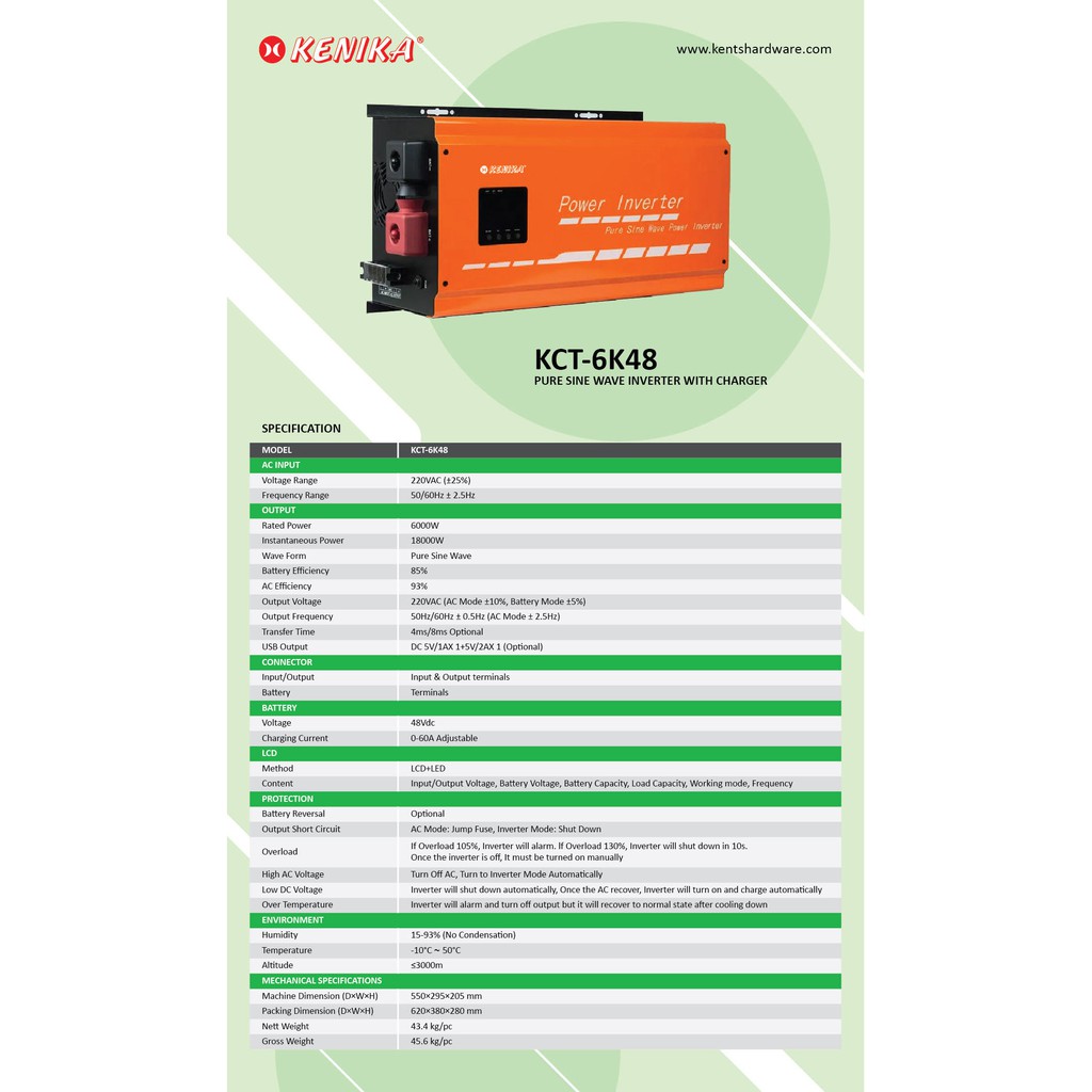 Kenika KCT-6K48 Solar Inverter Pure Sinewave DC48V 6000W