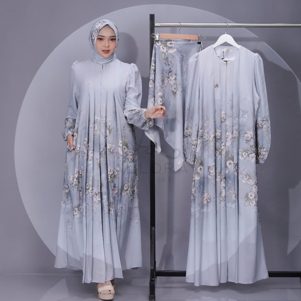 Allora Clara Set Hijab Dress Gamis Busui Premium Mewah Set Hijab Kualitas Butik By Allora