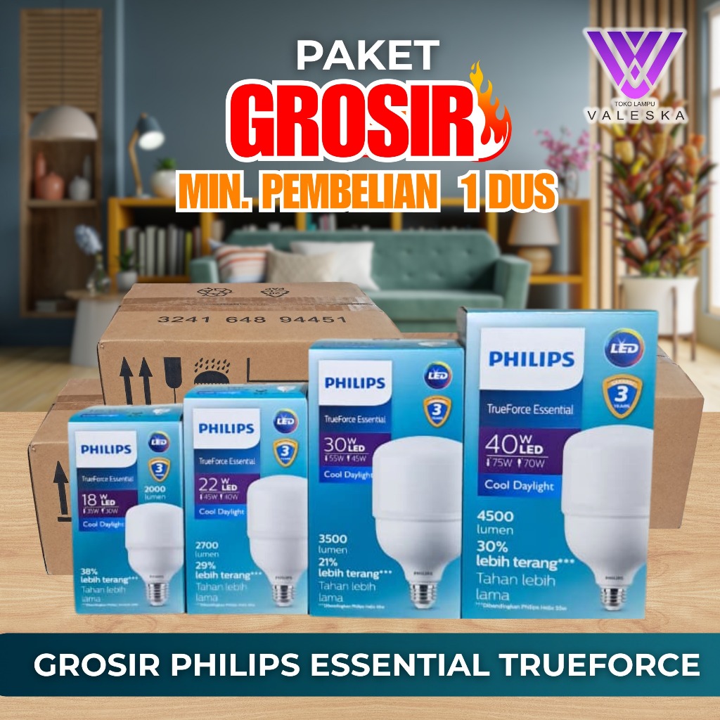 Paket Grosir Philips Ess TFORCE Essential TrueForce Lampu Capsule Hemat Energi 18W 22W 30W 40W 1DUS ISI 6