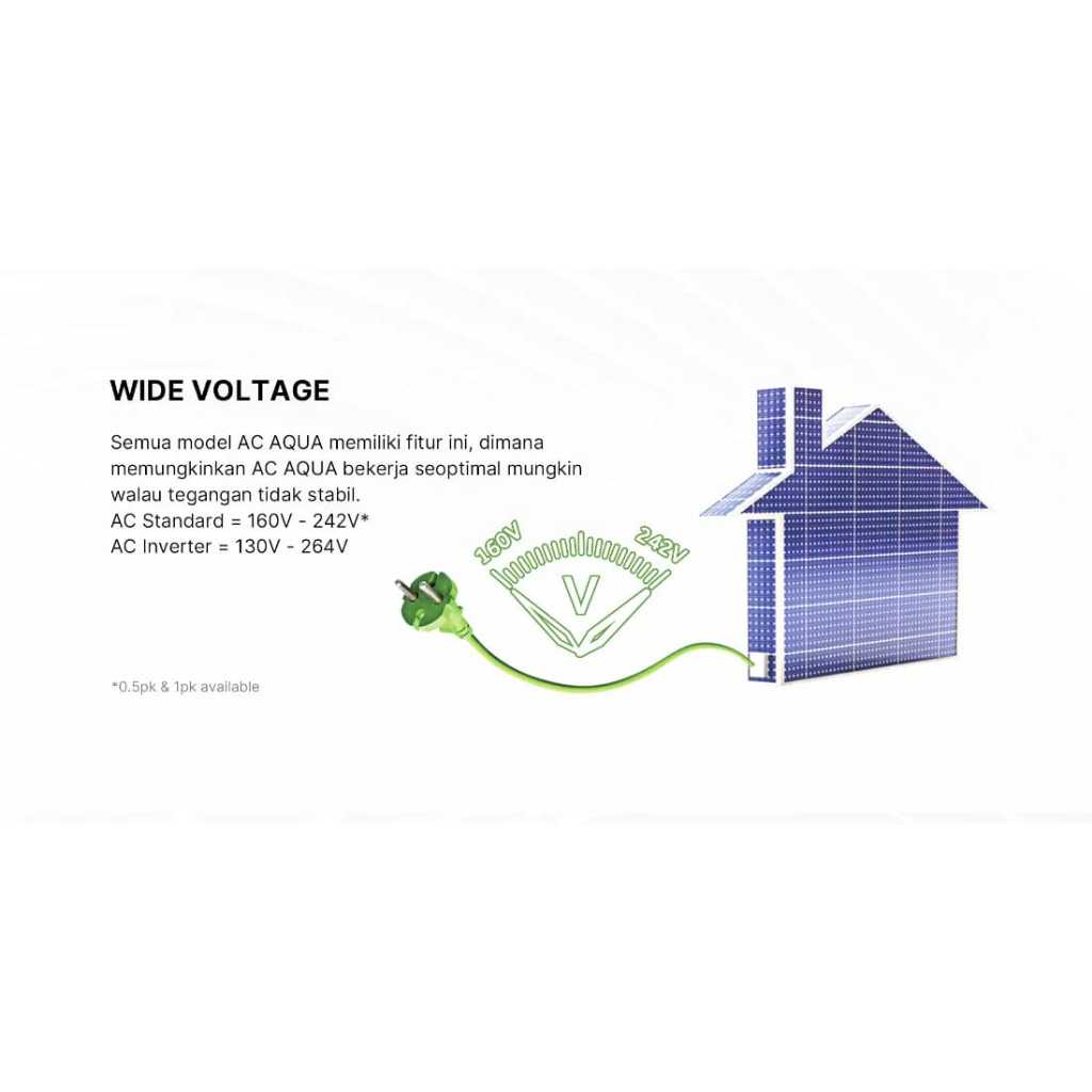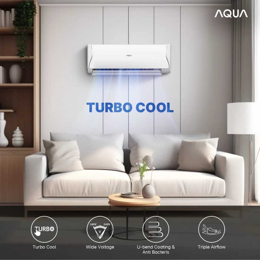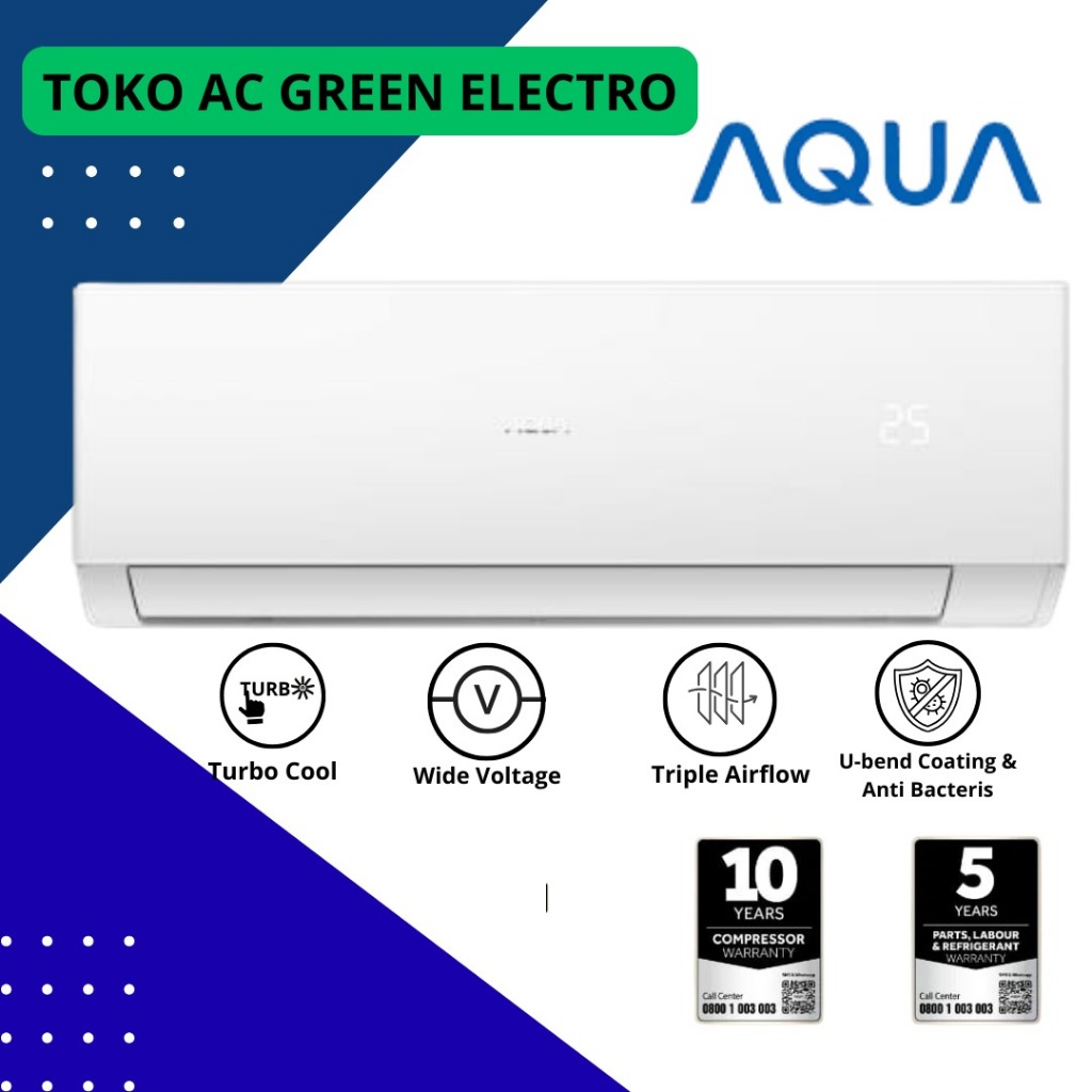 1 Set AC Aqua 1/2 pk - 2,5 pk barang original pabrikan segel plus remote Garansi resmi 10 thn kompresor, 5 thn sparepart
