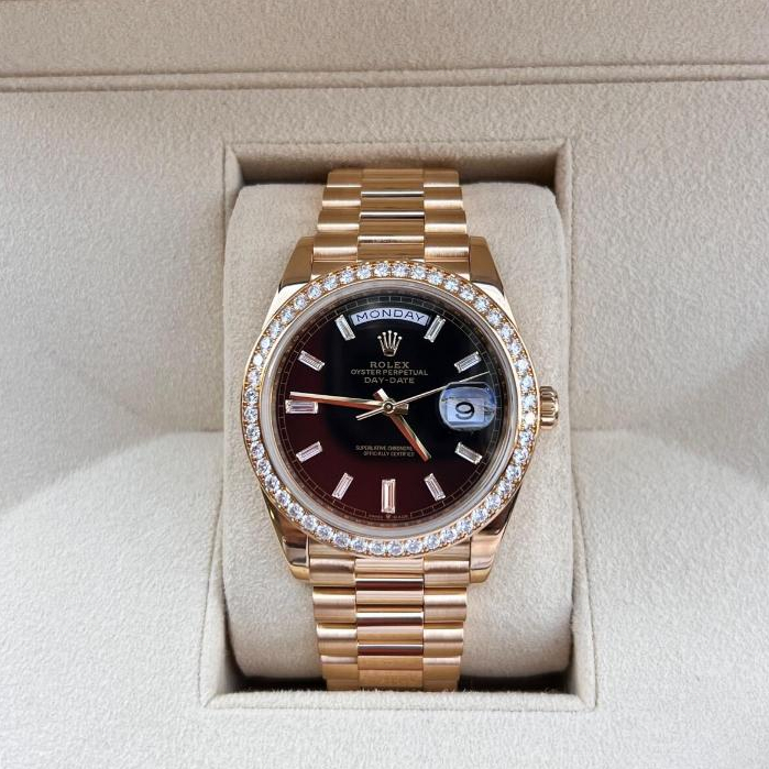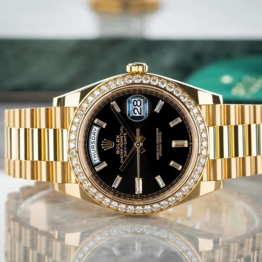 [100 PERSEN ASLI] Original Jam tangan Rolex Pria Rolex Day-Date Series M228348RBR-0001 40mm Black dial Automatic 18CT Teflon m