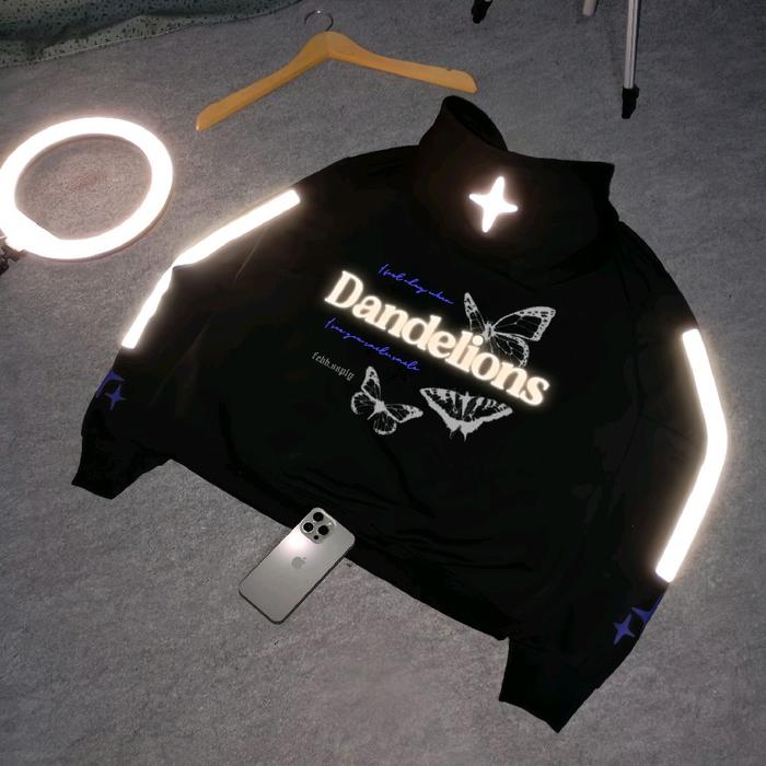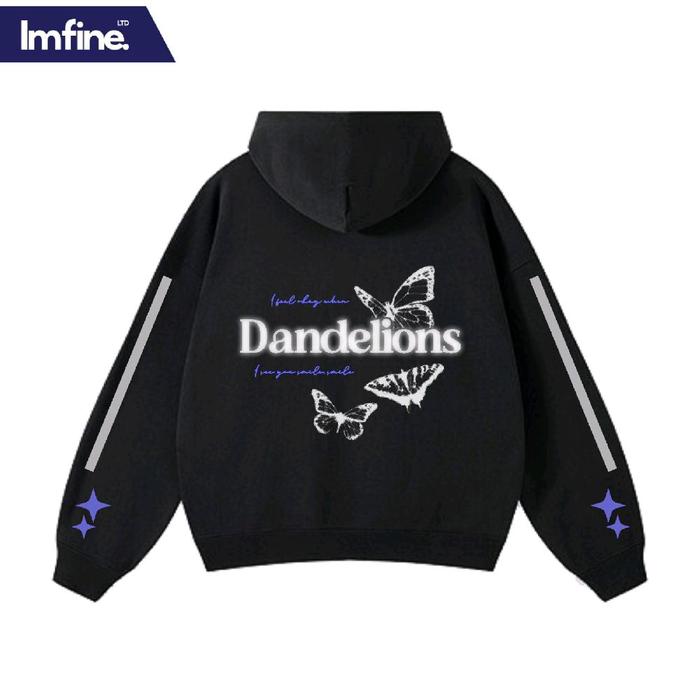 Febb - Sweater Hoddie Jaket Dandelions Menyala Murah Pria Wanita Flecce 300 Gsm - Hitam, M