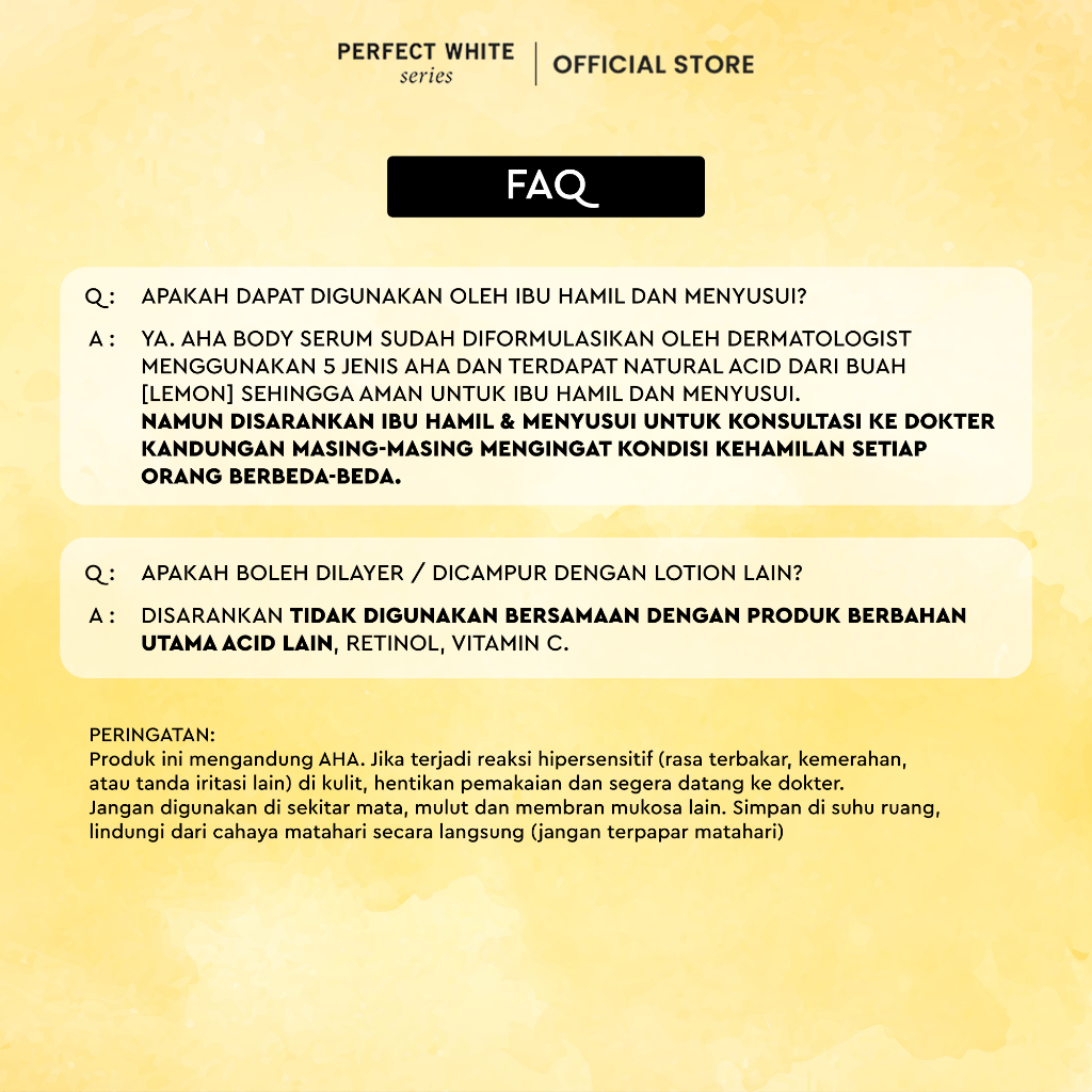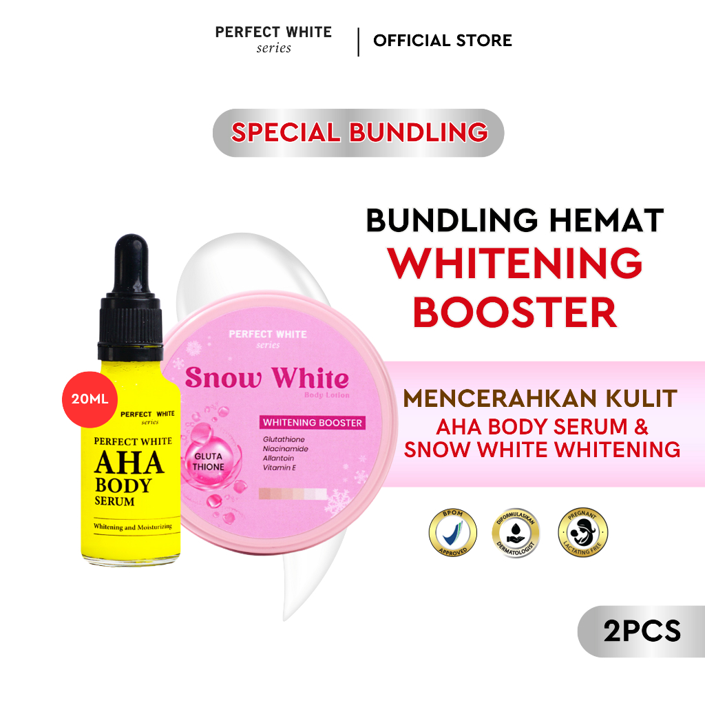 [2Pcs] Perfect White 20Ml Aha Body Serum + Snow White Body Lotion Whitening | Pencerah Badan