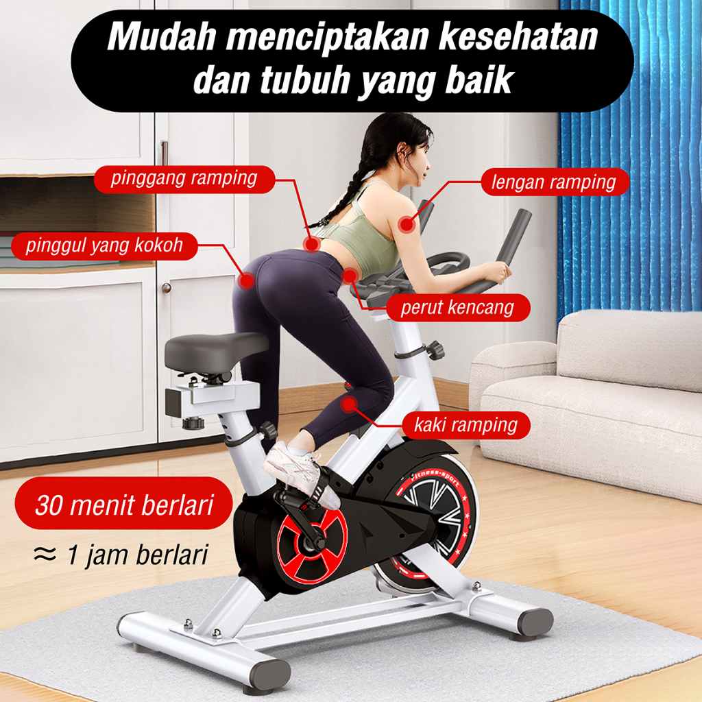 HTD SPORT Alat Fitness Spinning Bike Sepeda Statis With Phone Holder Layar LED And Kinomap Apps
