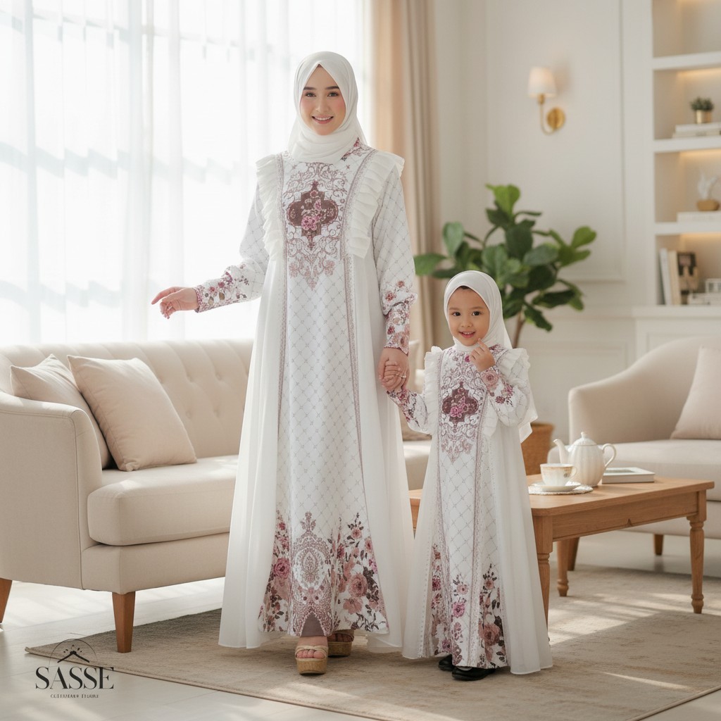 [ PO 15-30 HARI ] SELINA GAMIS COUPLE TERPISAH IBU ANAK MARBELA DIGITAL PRINTING ANTI UV PREMIUM MIX CERUTY BABYDOLL DESAIN ELEGAN NYAMAN BAJU MUSLIM WANITA PASANGAN LEBARAN 2026