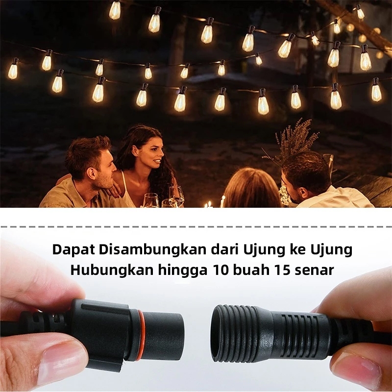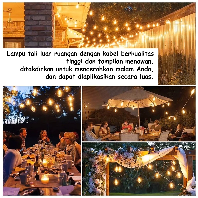 QIMEDO 25 Lampu Led 15 Meter Kabel Fitting Tahan Air Kafe Bola Komplit Lampu Gantung Outdoor