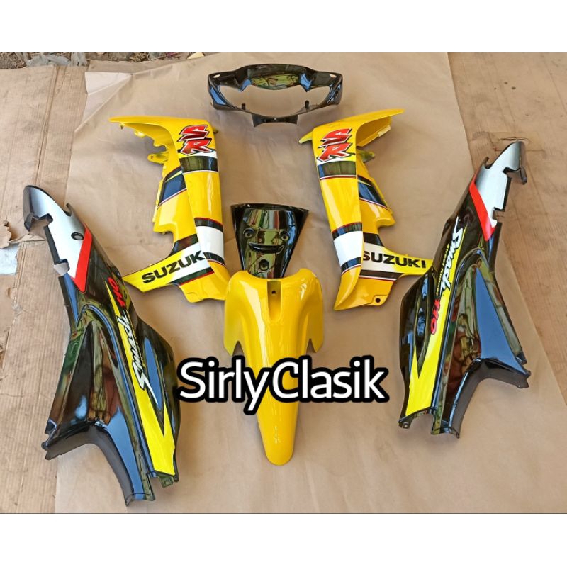 Cover Body Fullset Halus Kasar Plus Lampu Depan Belakang Suzuki Smash 110 Lama 2002 s/d 2006 Warna Kuning Hitam