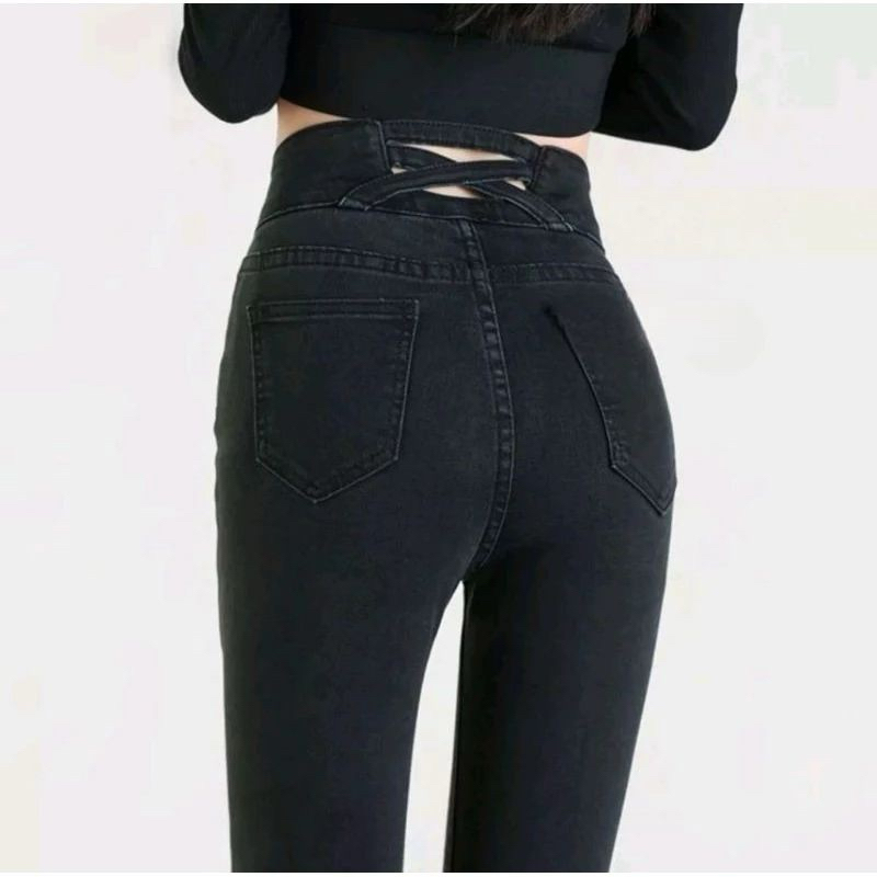 Cassandra - Celana Jeans Strech Pensil Silang Super Premium Wanita Highwaist Skinny Jeans Terbaru Kekinian