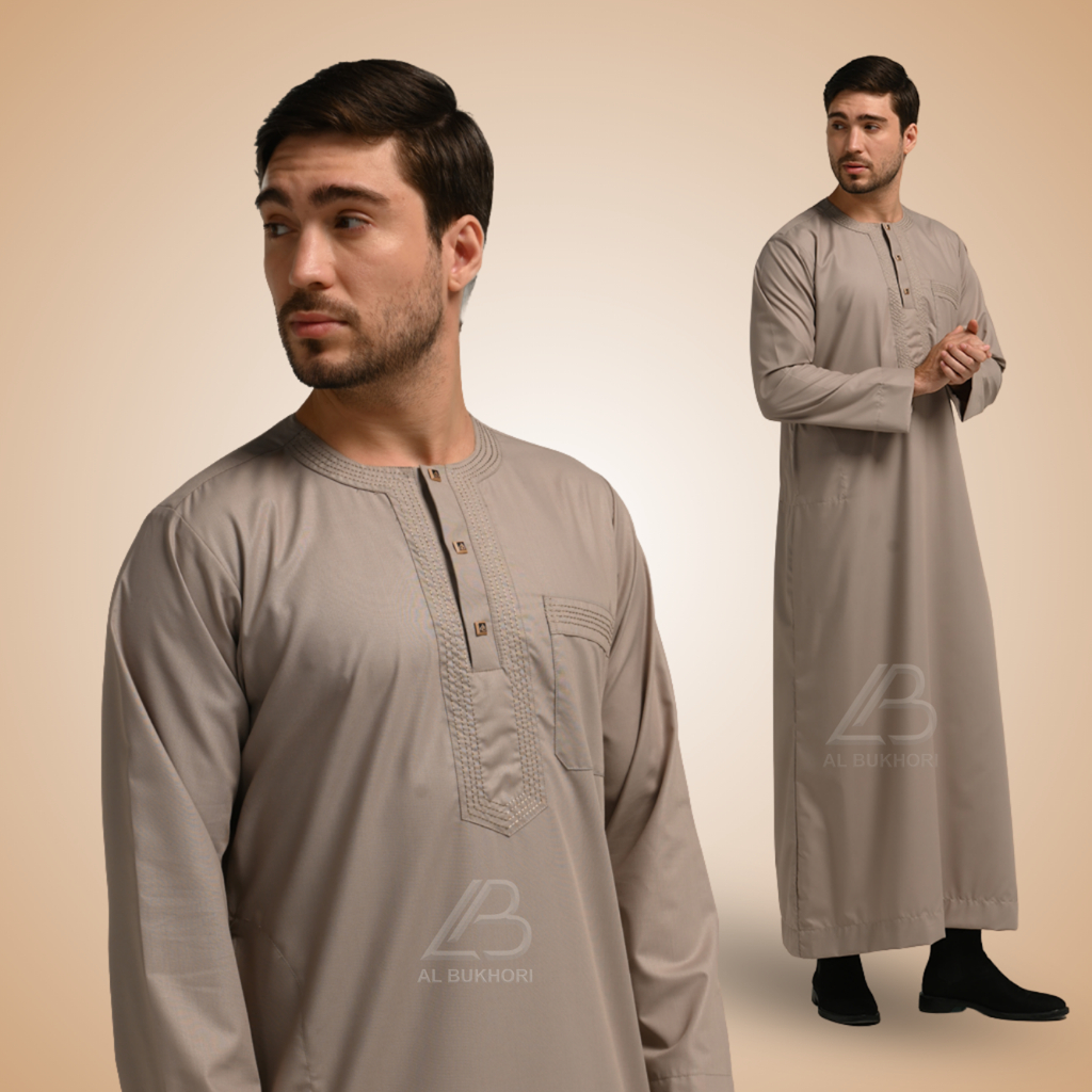 Al Bukhori - Tencel Gamis Thobe Jubah Pria Bodyfit Reguler Dewasa Premium Lengan Panjang - Jubah Ammar